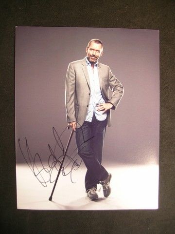 This is a large size, signed color photo of actor Hugh Laurie of 'House MD' fame. Hugh Laurie was born in Oxford, England, the son of an Olympic gold medalist. Besides acting and comedy, he has written a best selling thriller, The Gun Seller, and a second novel is forthcoming. The photo features Mr. Laurie as Dr. Gregory House, resting on his cane, and is signed in black ink. This hard to acquire autograph was obtained after a Q&A session at the Screen Actor's Guild offices. (measures approx. 11"x 14")