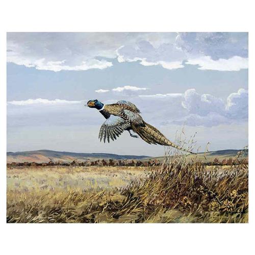 [Canadian 1914-1970] UNTITLED (PHEASANT IN FLIGHT) Oil on board 16 x 20 in. Signed.