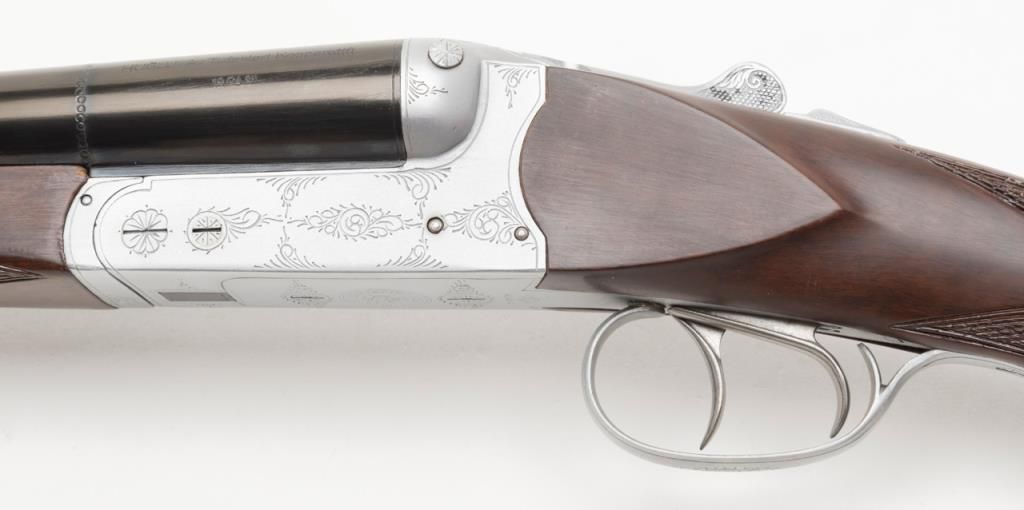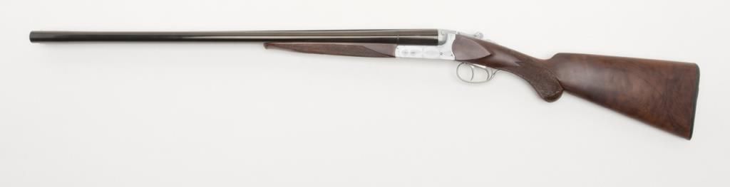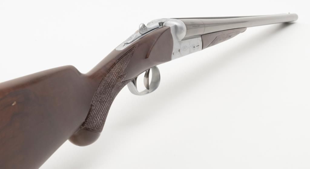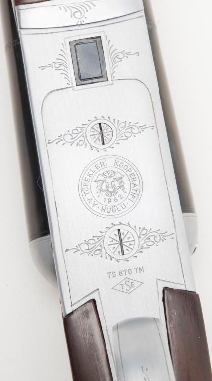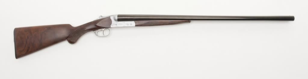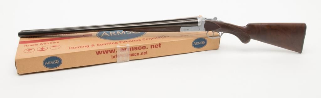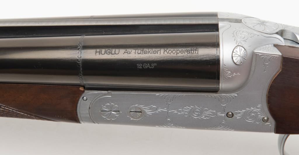 Huglu SXS hammerless shotgun, 12 gauge, 28” barrels with screw in chokes, blue finish, checkered wood stocks, #02C1777, in like new condition showing little use or handling; in factory cardboard box. (Modern). Est.:$200-$400.