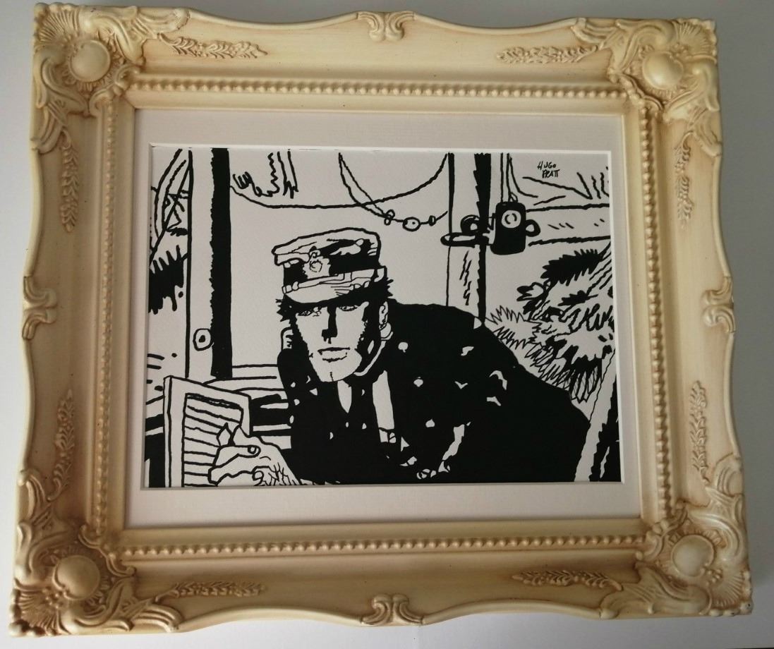 A drawing of Corto Maltese by Hugo Pratt. Size: 11.75 x 8 inches. Hugo Pratt is considered to be one of the greatest among comic artists for his versatile fantasy and use of graphic freedom, and the combination of these factors resulted in very strange stories. In his tales, reality can change into dream and vice-versa, and in this way he took his readers into the strangest lands and even through time. He is thought to be one of the first comic artists to mix literature with adventure. Hugo Pratt has been a great inspiration to comic artists all over the world. The drawing is mounted and framed, and is supplied with coa.