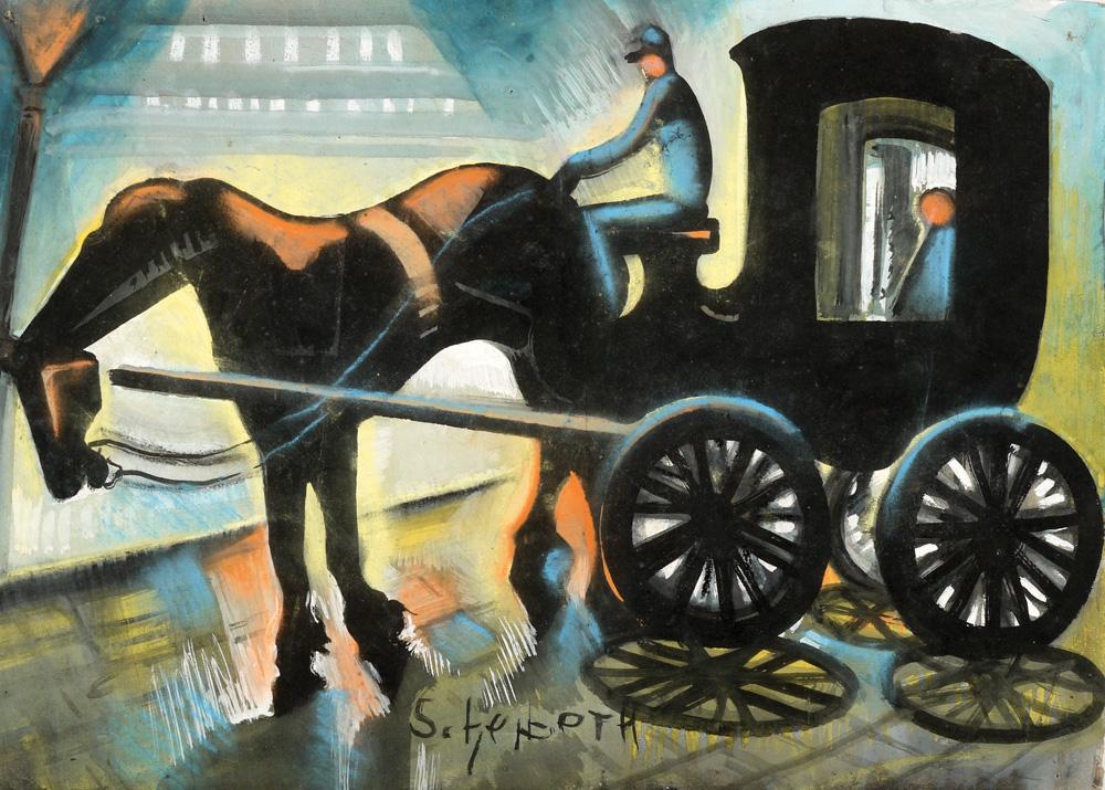 Hugo Scheiber, Hungarian Art, 1873 - 1950, Coachman and Carriage, Gouache and pastel, 40.5x57cm, Signed., , , , ,