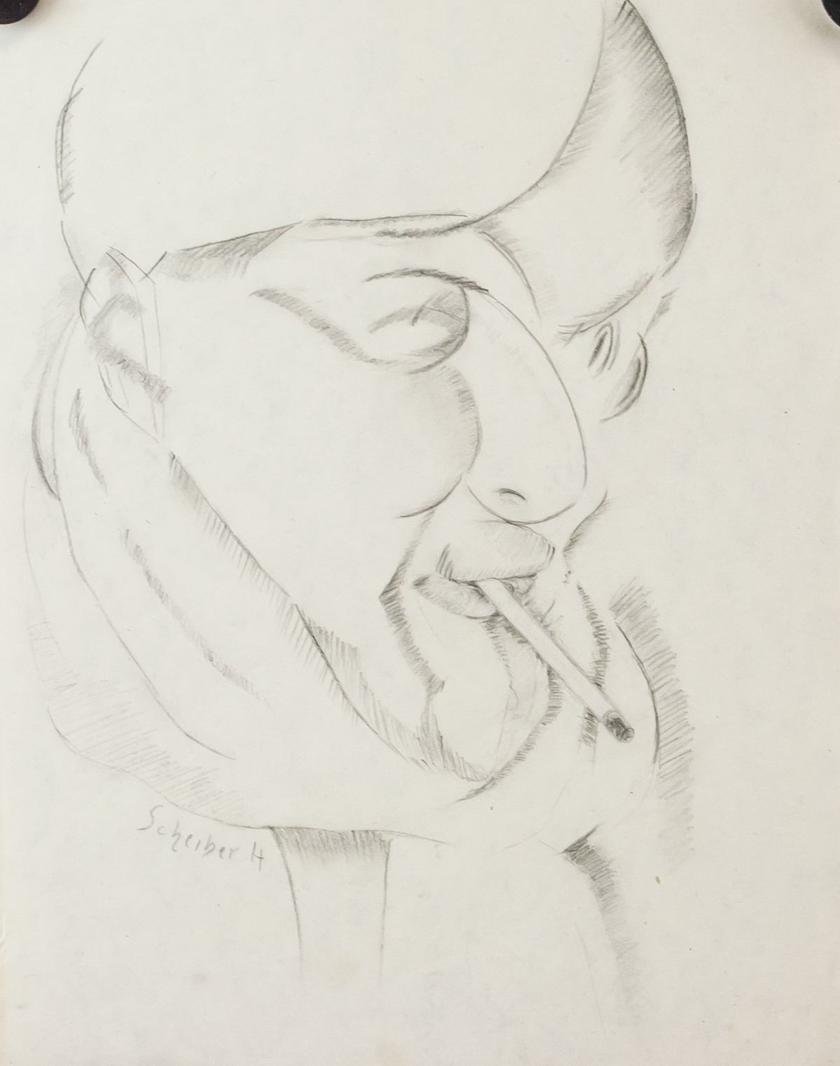 Pencil on paper. Featuring study of a portrait of smoking figure. Signed Scheiber on the lower left corner. Attributed to Hugo Scheiber (1873-1950, Hungarian). 27 x 20.7 cm 910.5 x 8 inches). PROVENANCE: This lot carries limited provenance from a Southern Ontario estate
