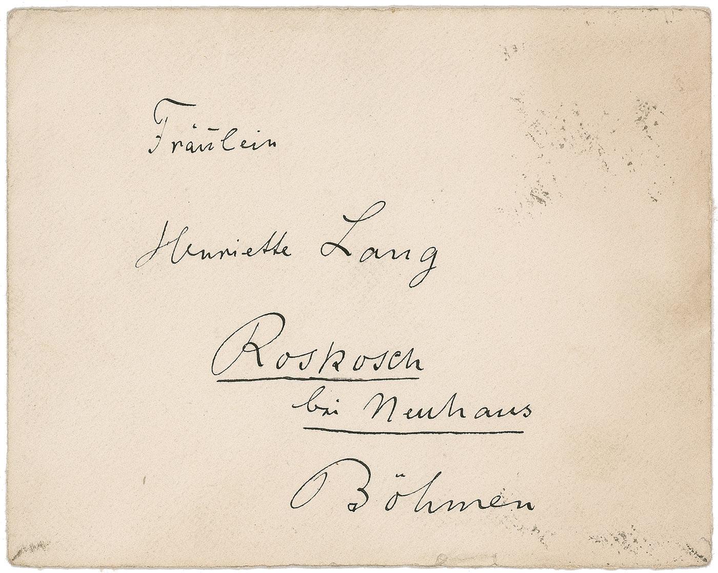 Austrian composer (1860-1903), particularly noted for his art songs, or Lieder. Though he had several bursts of extraordinary productivity, particularly in 1888 and 1889, depression frequently interrupted his creative periods, and his last composition was written in 1898, before he died of syphilis. Unsigned hand-addressed envelope, 5.25 x 4.25, addressed in Wolf’s hand to “Fraulein Henriette Lang.” In fine condition, with some scattered light toning and soiling.
