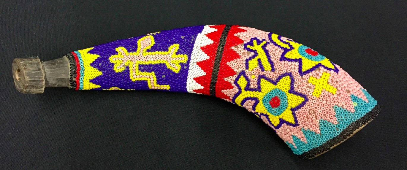 Maker: Unknown Huichol bead artist. Approx. Age: Vintage. Size: 9” long. Condition: Good, has a couple beads missing here and there, but not real noticeable. Additional Info: The Huichol are noted for this kind of beading. Please look closely at the pictures - they are an important part of our description. Shipping: There will be a $5 handling / packaging fee for shipping this lot. The actual cost of postage will be added on top of that.