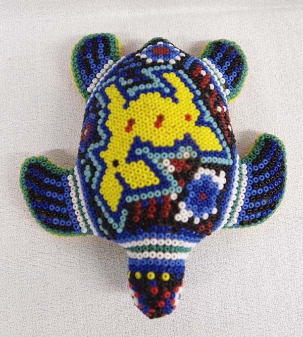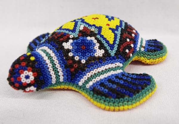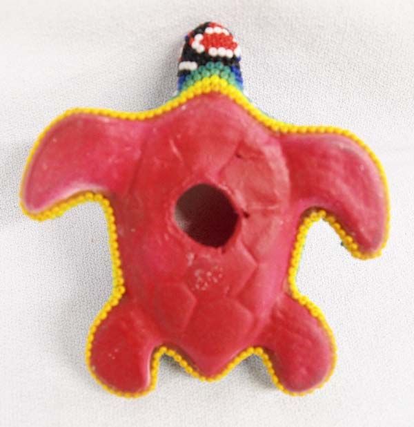 Huichol Indian Beaded Ceramic Turtle, measures 1.5'' X 4'' X 4''