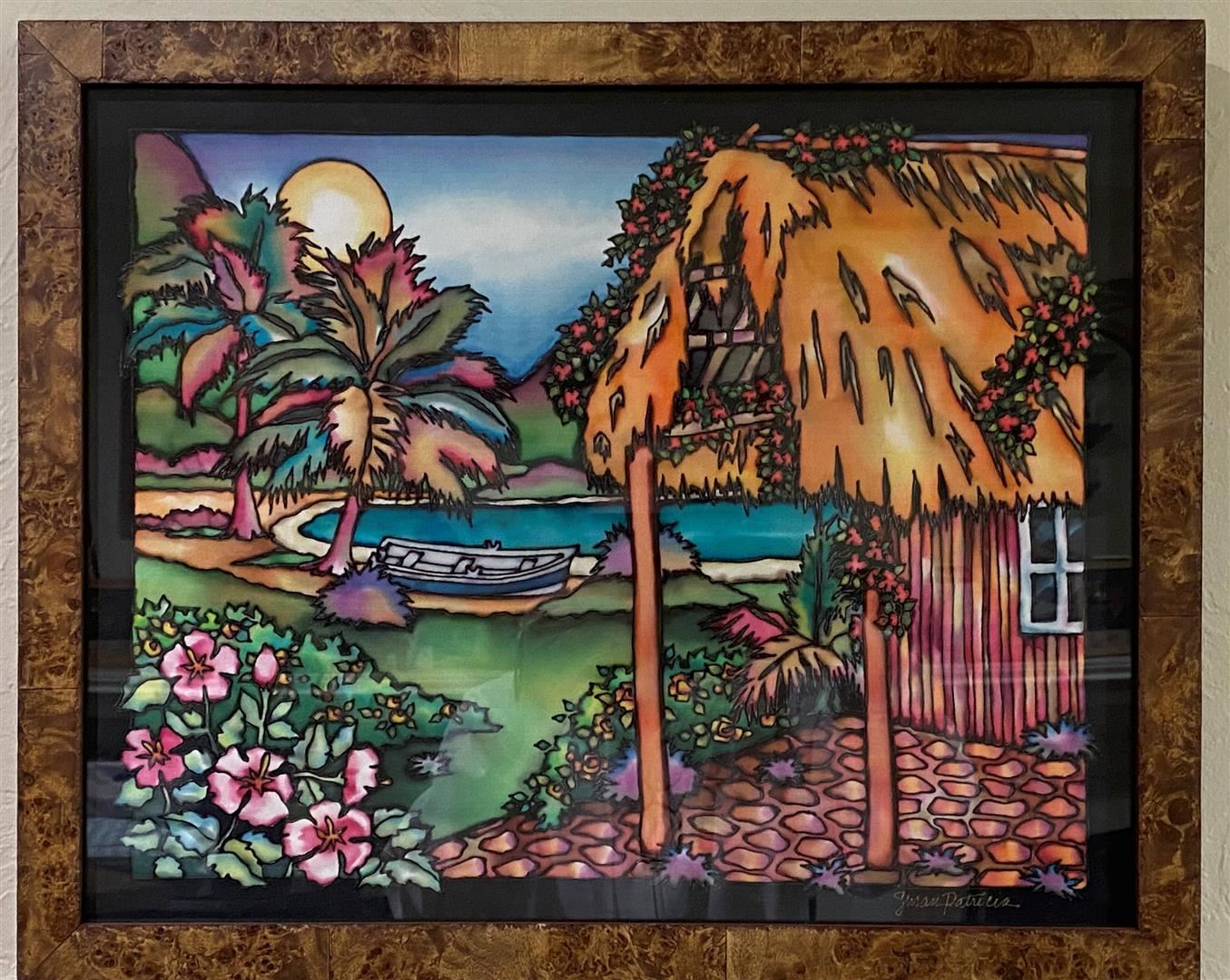 This is a stunning framed original on silk by Hawaii's Susan Patricia. It measures 16x20" UF and framed 22x18"