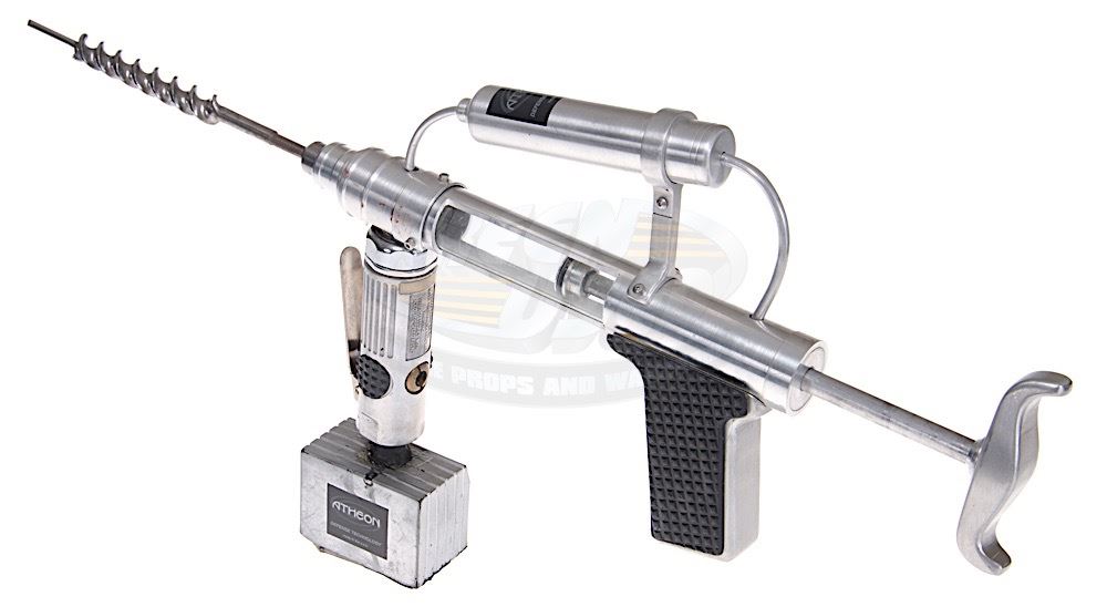 (Universal Pictures, 2003) This DNA extracting drill was custom-made by the production for use by Josh Lucas as "Talbot". The prop drill is made of aluminum and plastic with a compressed air handle attached as a front grip. The drill measures 23" in length and has only minor wear from use.