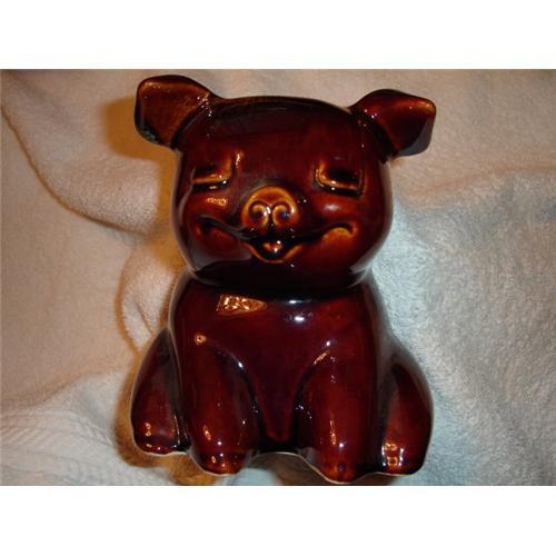 <tr><td>Title:Hull 5.5" Tall Mirror Brown Corky Piggy Bank</td></tr>