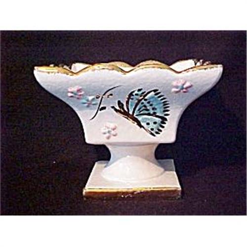 Very lovely urn with the butterfly pattern by Hull pottery. Produced in 1956, this item is over 5 inches tall and with the exception on some wear on the gold rim is in great condition. No chips/cracks or crazing. Base is marked Hull, B6@56