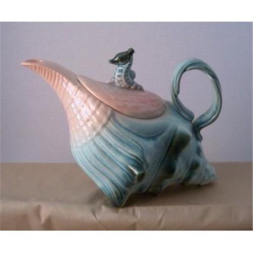 Hull made several pieces of Ebb Tide and we were fortunate to find this one, complete w/lid (and snail)and in vertual mint condition. It's a tea pot I doubt you will ever serve the bridge club tea from, but you can share your delight by showing it in your lighted curio with a discrete little sign "Look but don't touch"... Signed "HULL" with the #E-14 on the bottom, this is an original not a reproduction.