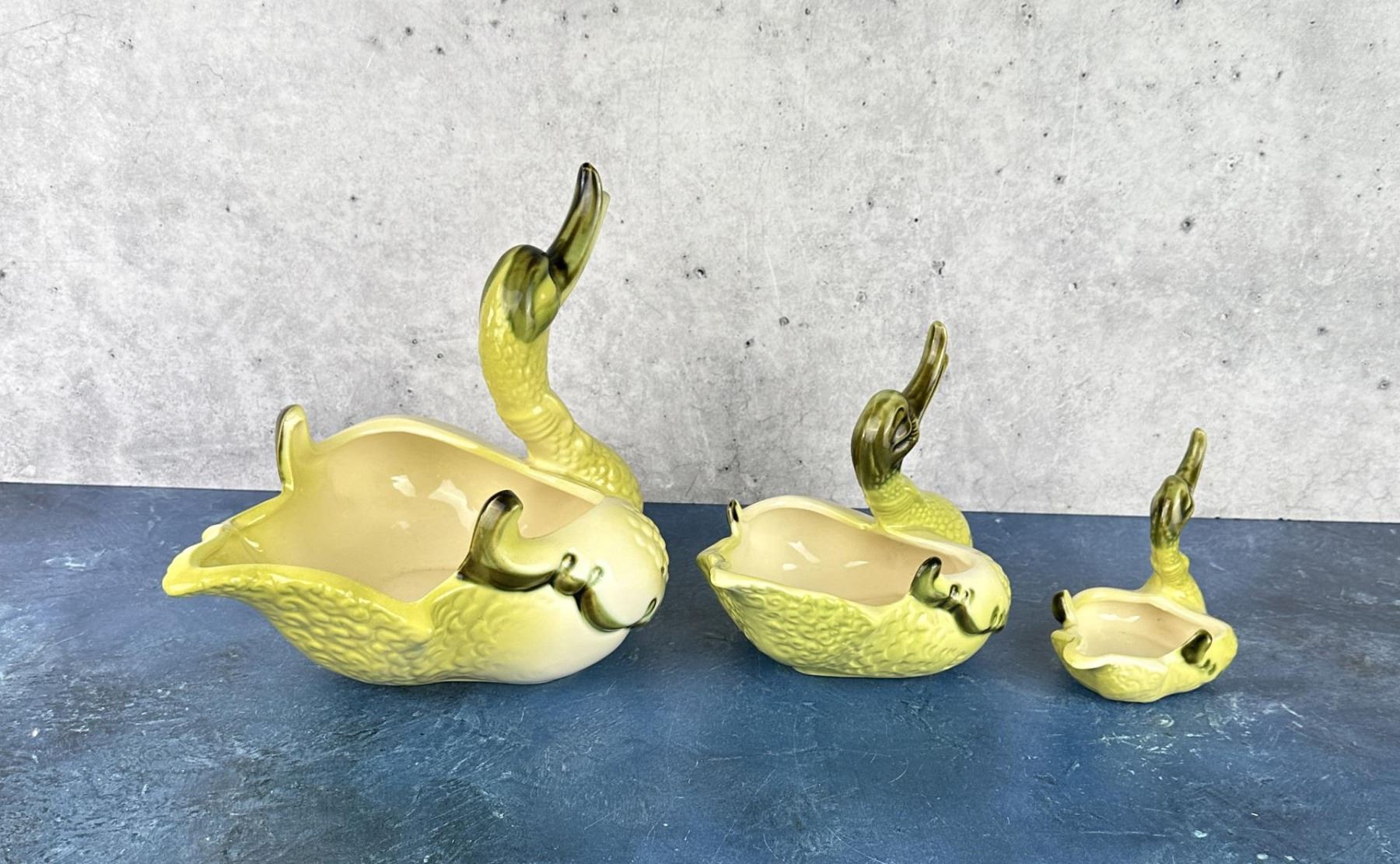 Three total. Largest measures 9 1/4" long by 8 1/2" tall by 8 1/4" wide.