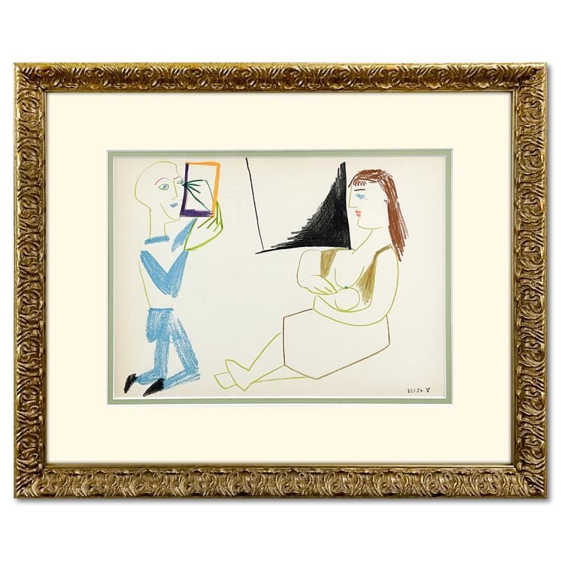"Human Comedy (27.1.54.V)" is a lithograph on paper by Picasso (1881-1973). This piece comes custom framed. Includes Letter of Authenticity. Measures approx. 22.5" x 19"(frame), 12.5" x 9" (image). There is a small scuff on the acrylic protective cover.