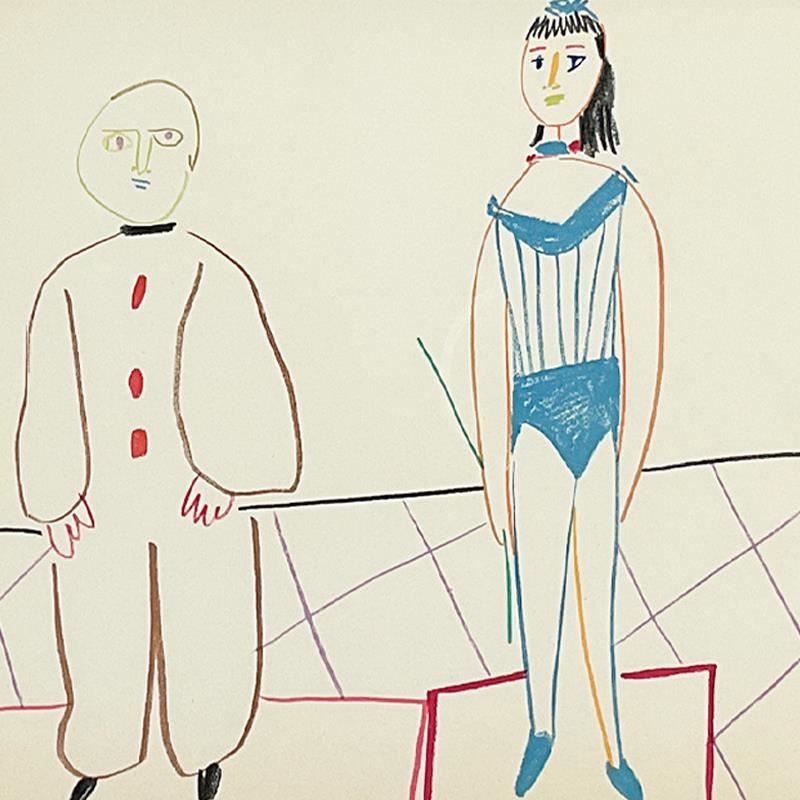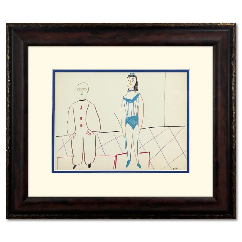 "Human Comedy (3.2.54.I)" is a lithograph on paper by Picasso (1881-1973). This piece comes custom framed. Includes Letter of Authenticity. Measures approx. 22" x 19"(frame), 12.5" x 9" (image).