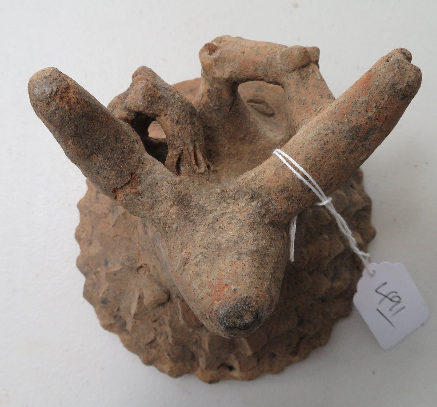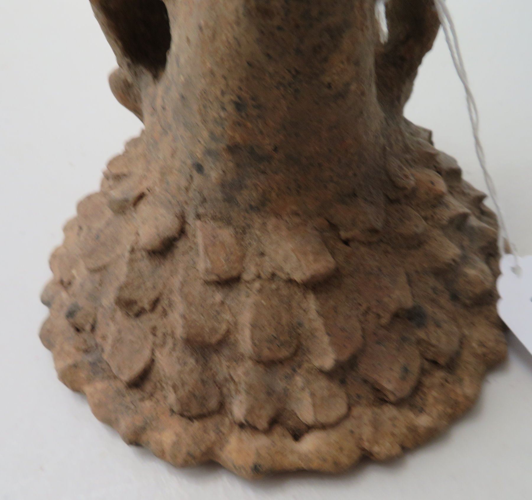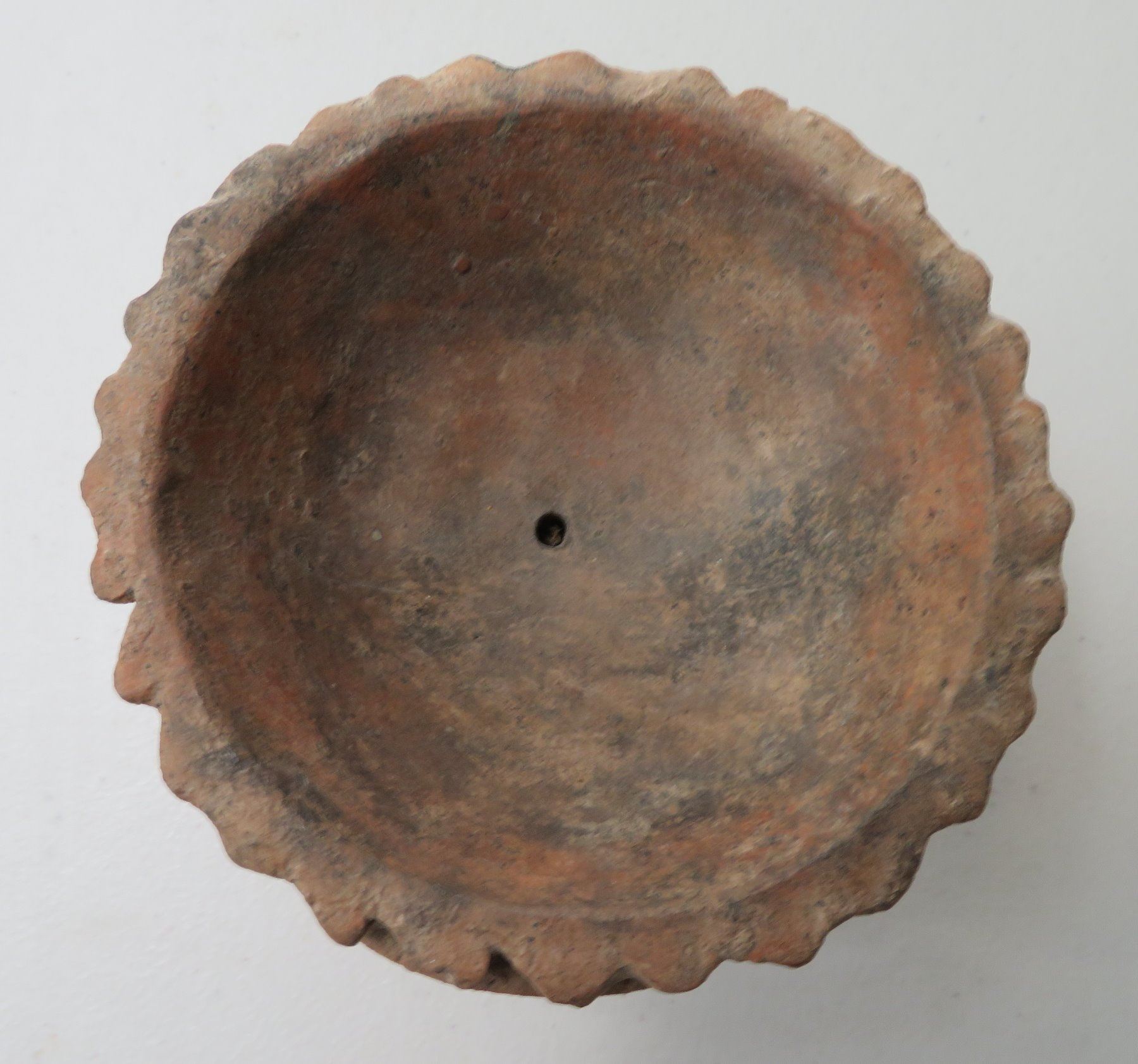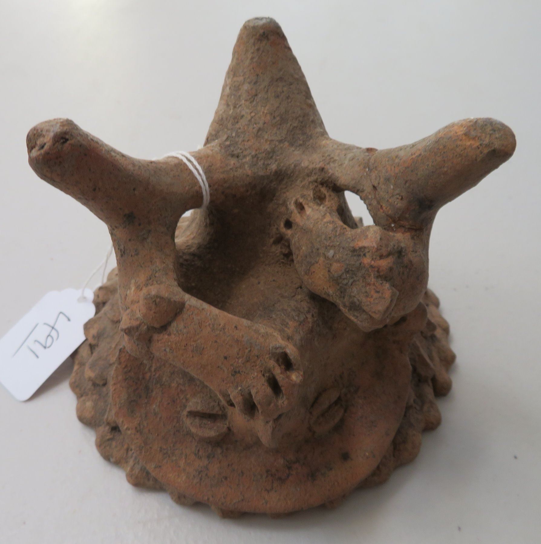 Human Effigy Bowl, pre-Columbian item. Made of clay, the item measures 5" x 4 1/2" x 4 1/2". Central Mexico. From an old and large, Rancho Sante Fe, Calif. estate, originally collected by a dentist. Condition: Some wear, leg broken and glued, see images. Shipping: $25.50 w/insurance and signature, due to value.