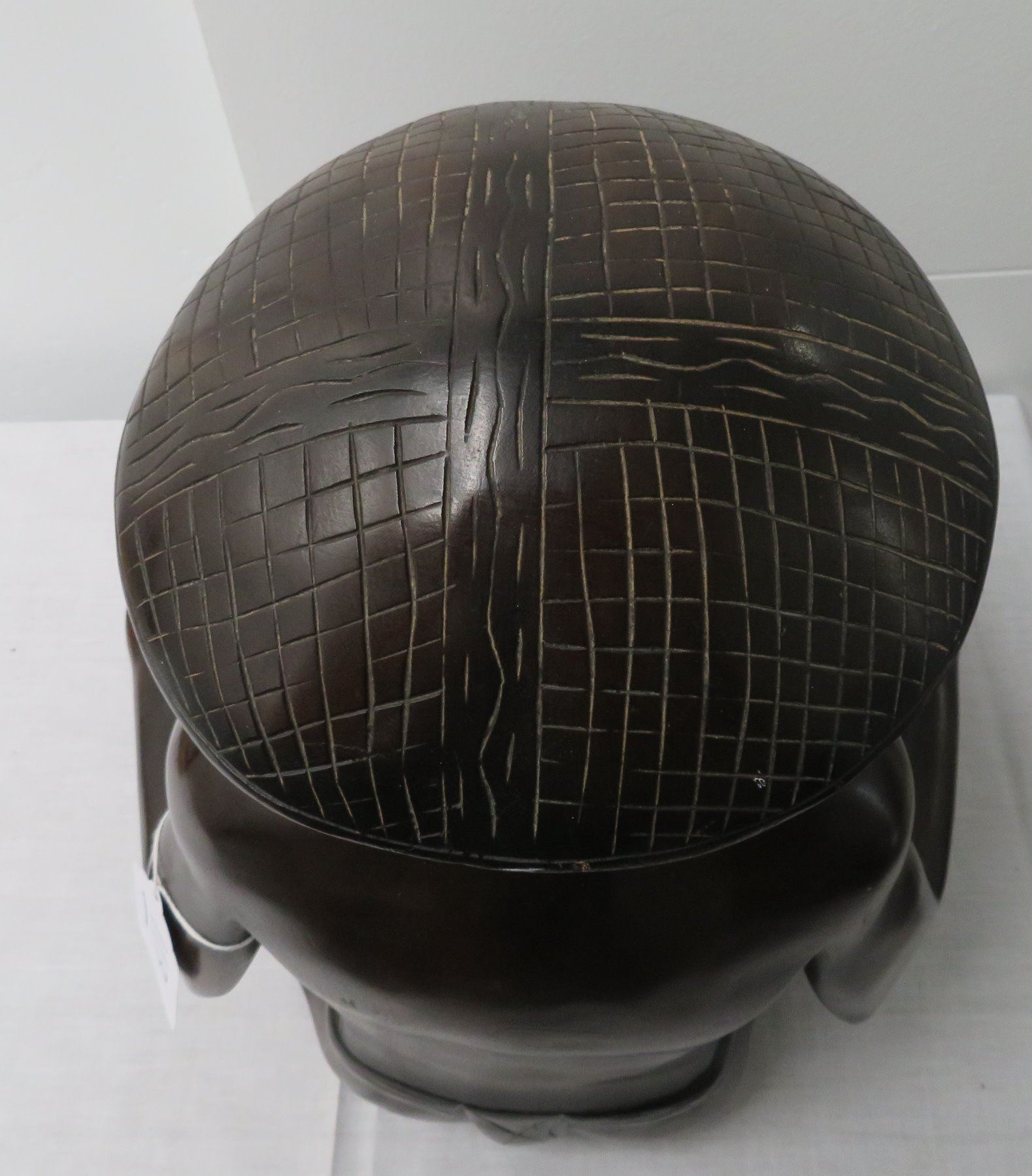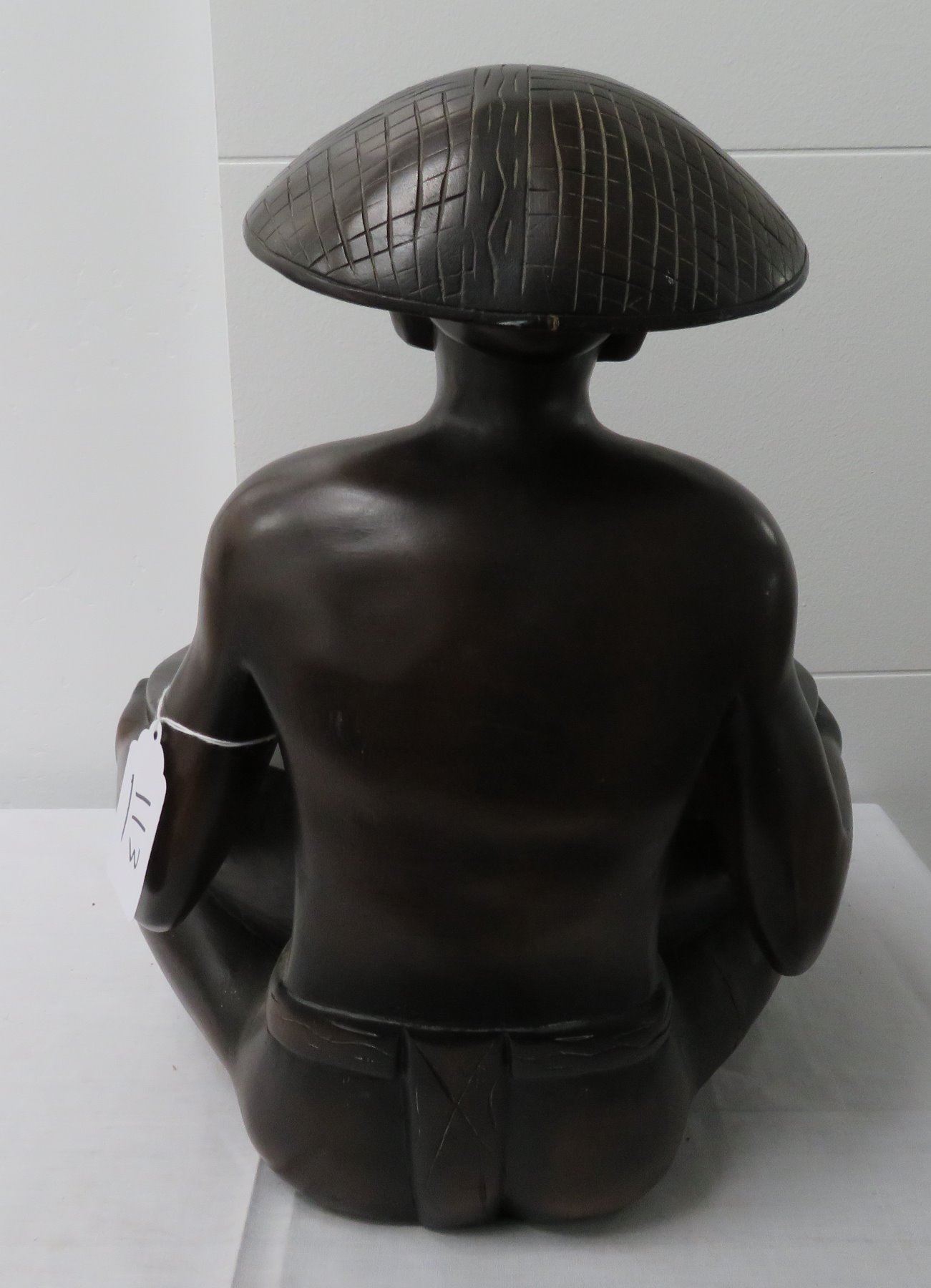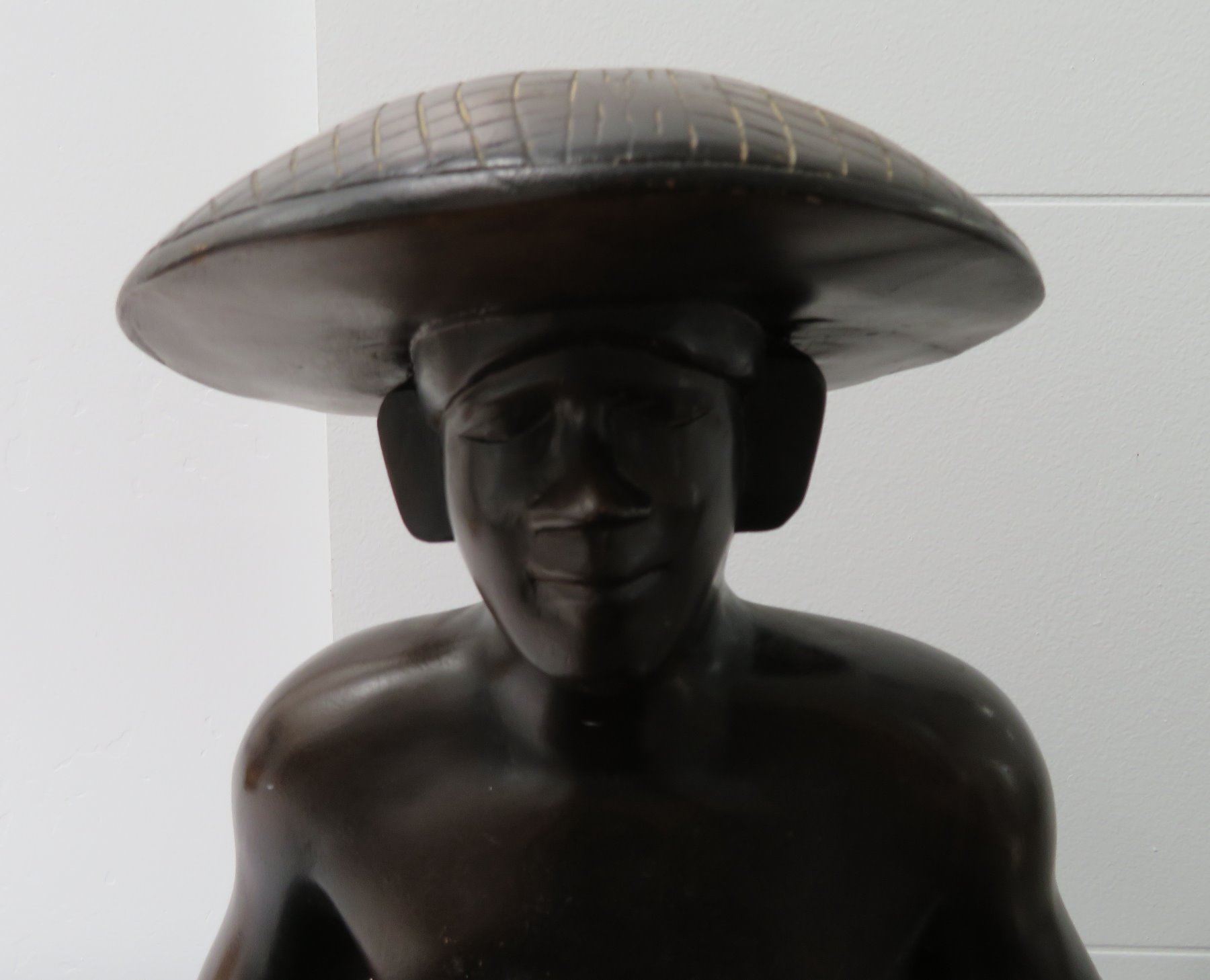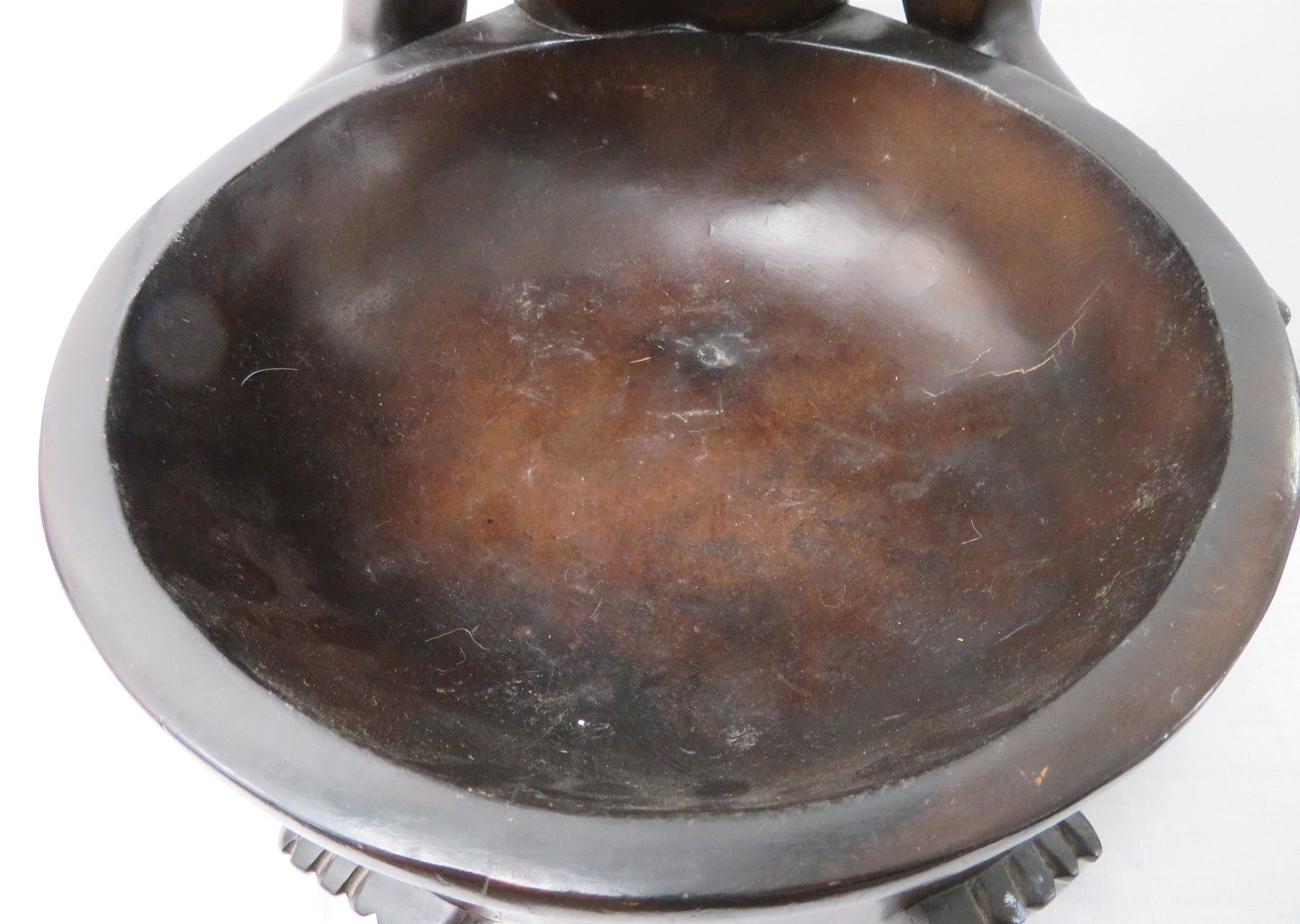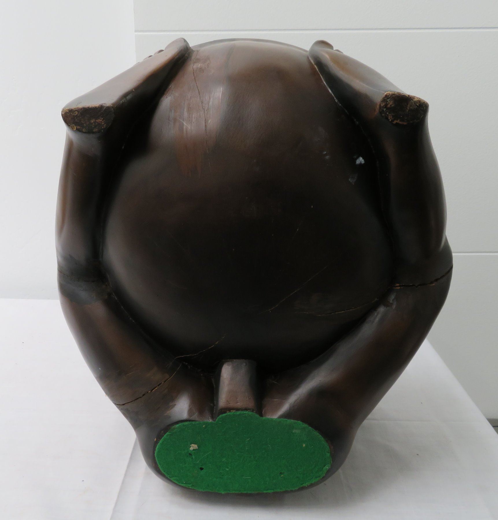 Human Effigy w/Large Bowl, c. 1940s. Made of mahogany, the item measures 19" x 14" x 15". Philippines. Quite large, well-made piece. Condition: Very fine carving, see images. Shipping: $65.00 USA estimate only, due to size and weight.