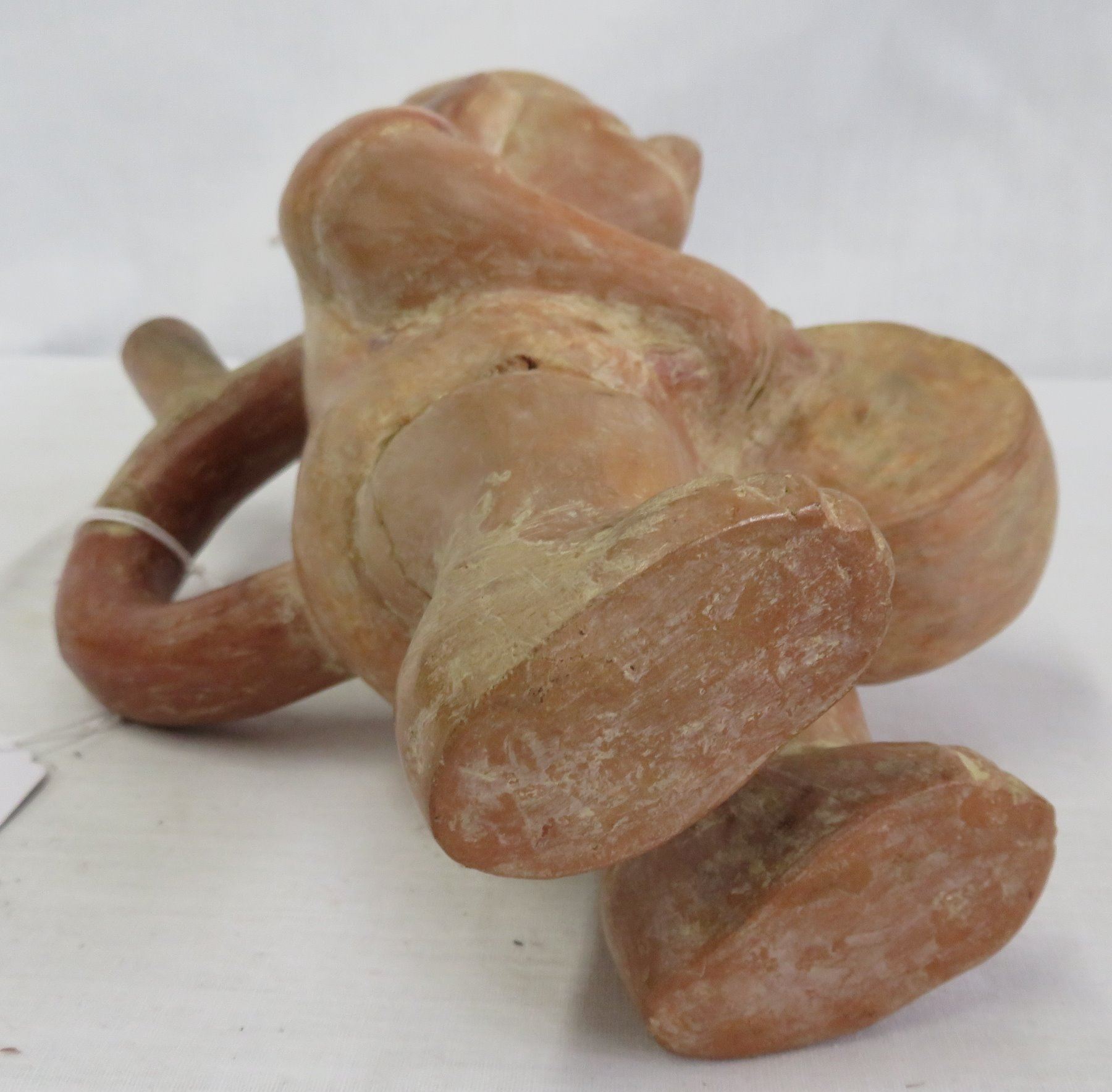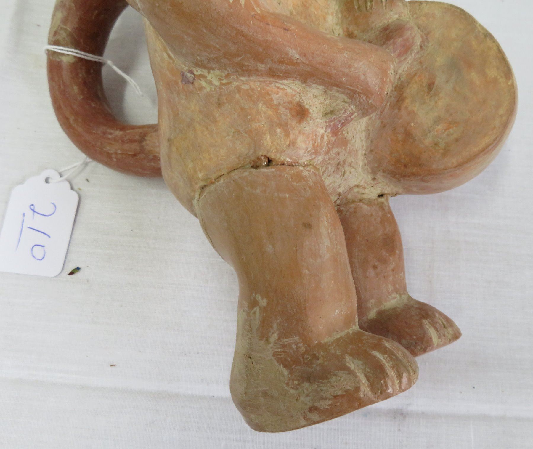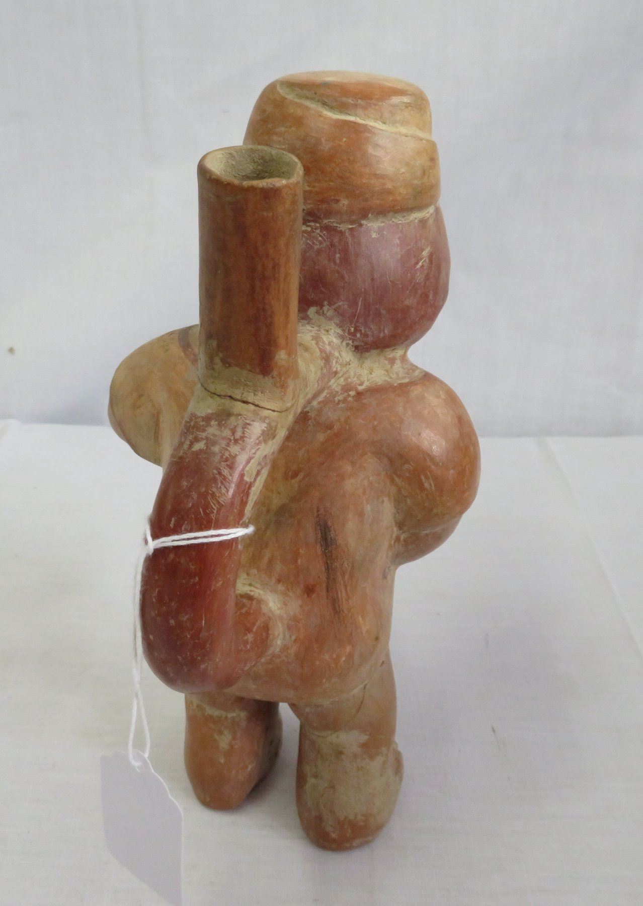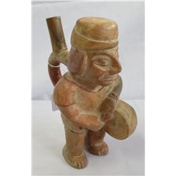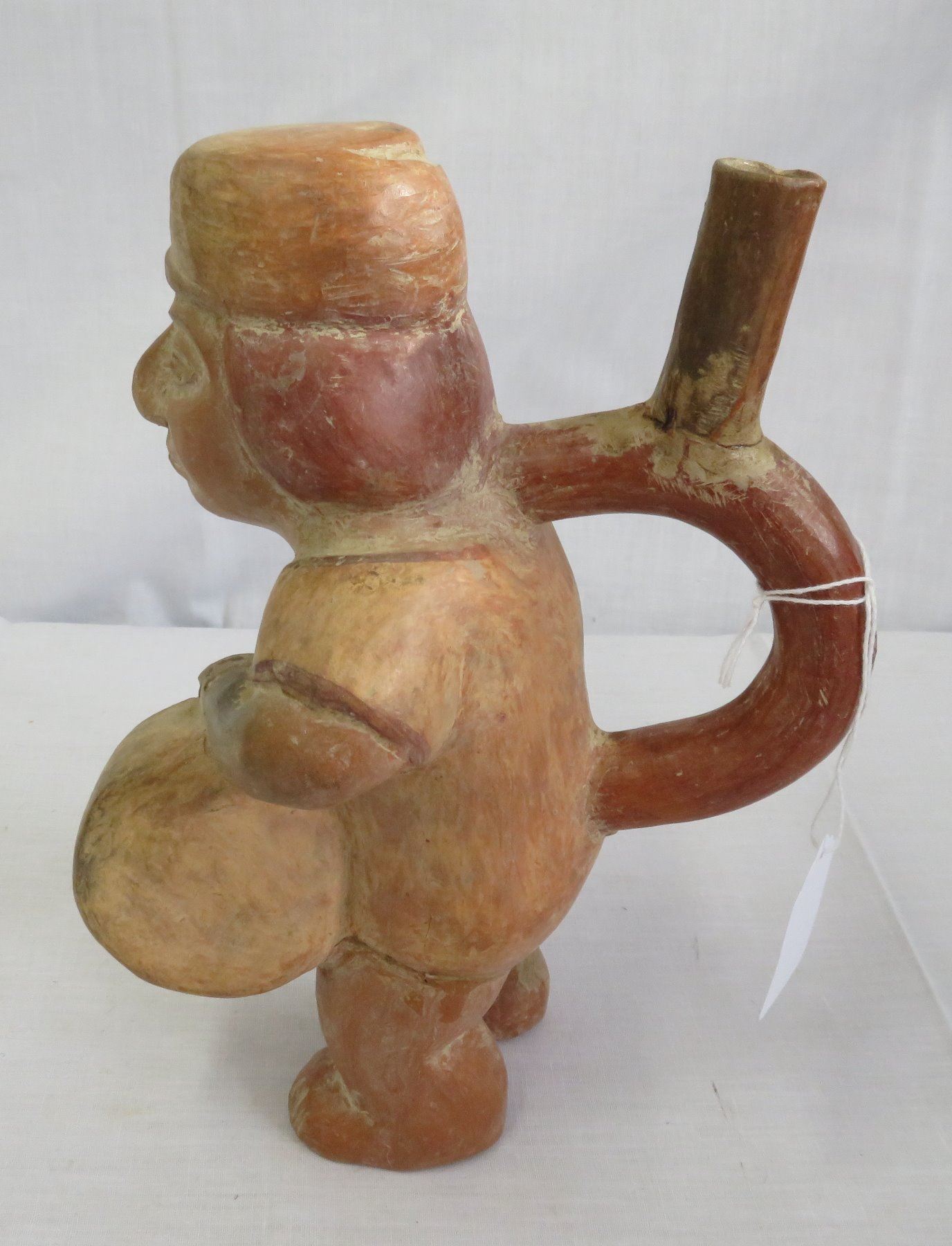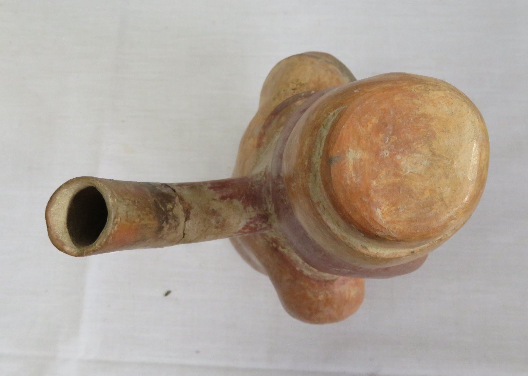 Human Stirrup Pot, pre-Columbian item. Made of clay and paint, the item measures 9" x 6" x 4". South America. Condition: Minor damage, see images. Shipping: $38.50 USA estimate only, w/insurance and signature, double-boxed.