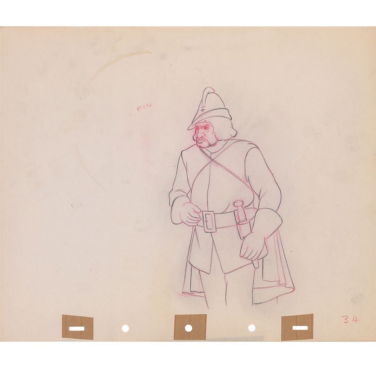 (Walt Disney Studios, 1937) Original production drawing featuring Humbert the Huntsman from Snow White and the Seven Dwarfs. Accomplished in graphite and colored pencil on untrimmed 12 x 10 animation paper. Image measures 4 x 7. In fine condition.
