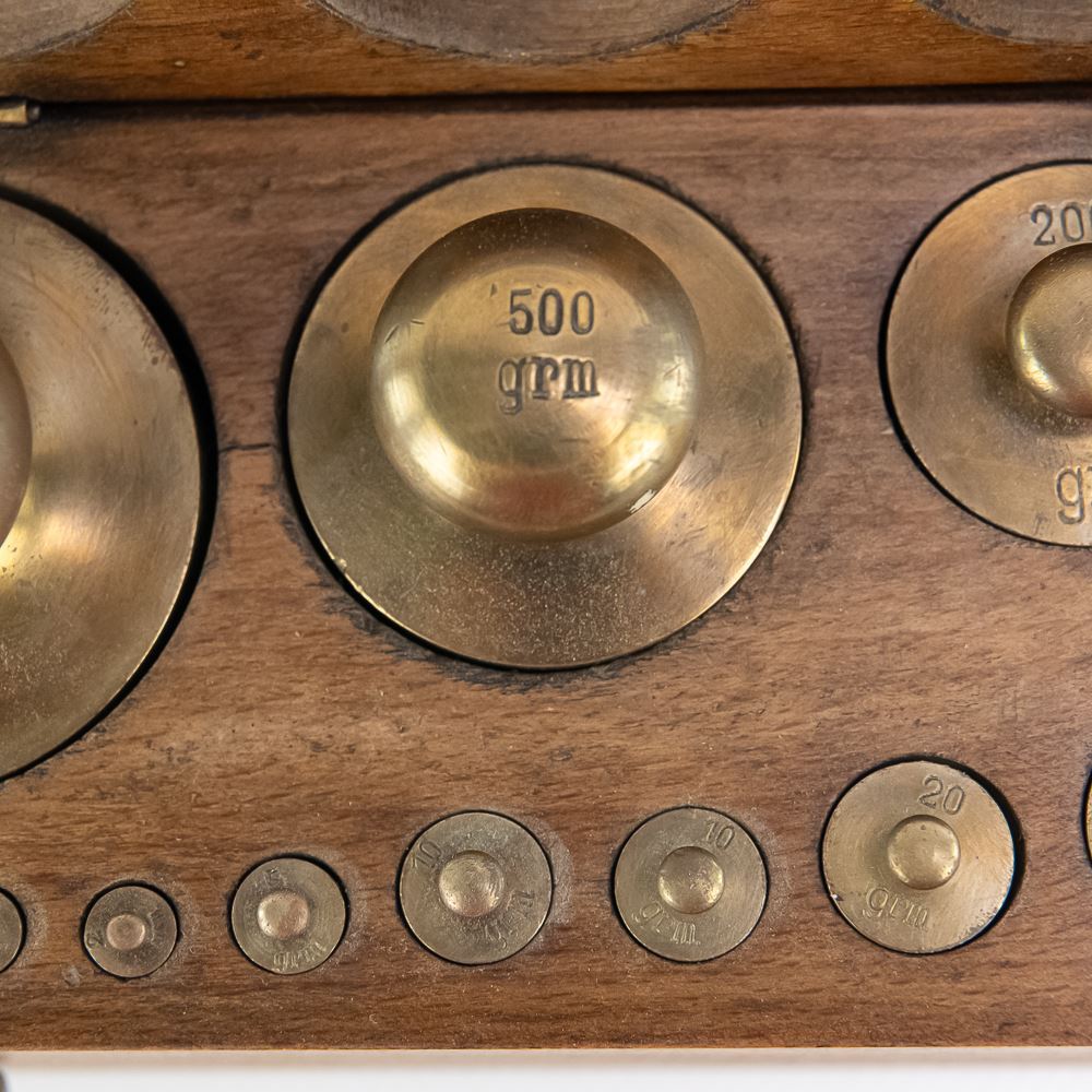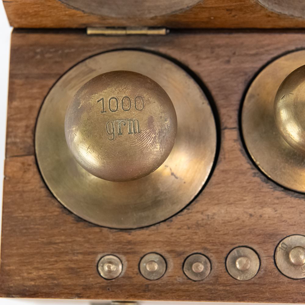 Vintage Humboldt mfg. metric calibration 1 gram - 1000 grams weight set showcased inside original wooden box. Perfect addition to your collection, please use photos to judge condition and bid accordingly.