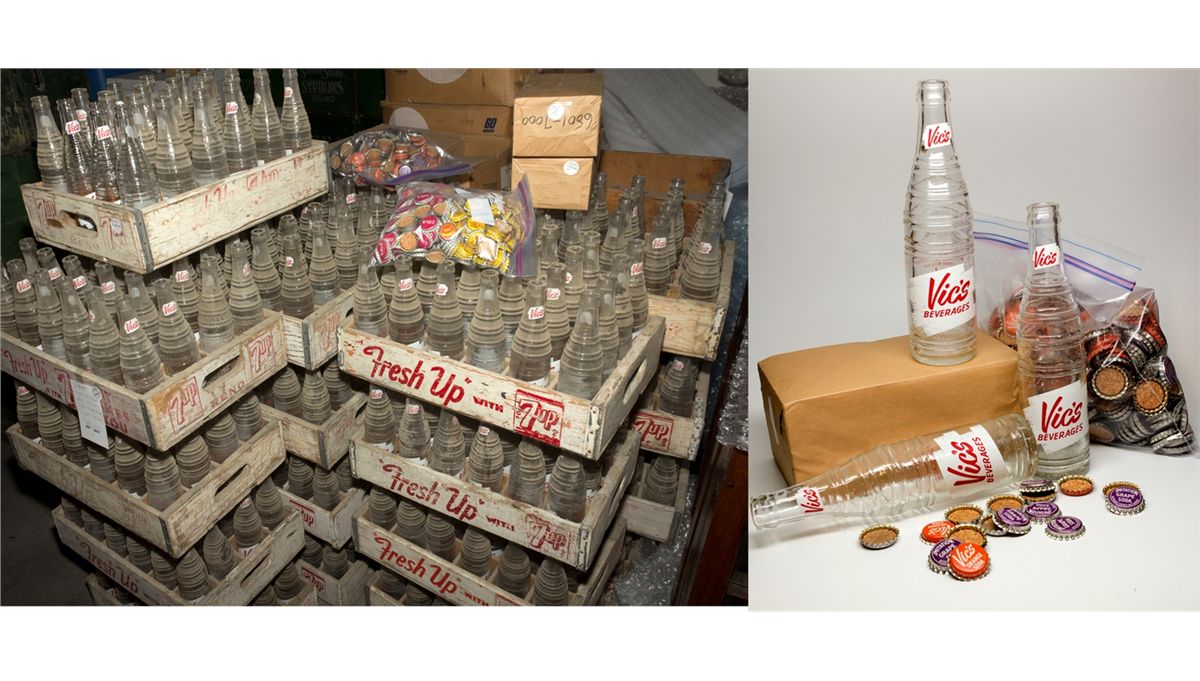 This is a chance for anyone who's ever wanted to be in the soda bottling business. The lot includes over 350 unused bottles in the original wood crates, thousands of unused bottle caps and even unused receipt books to bill your clients. The bottles and caps bear the logo of "VIC'S" soda and are printed with different flavors. Located in Winnemucca, Vic's was bottled at the 7UP plant back in the 1950s. The company has long since closed down, so now is your chance to start your own soda empire. -60145