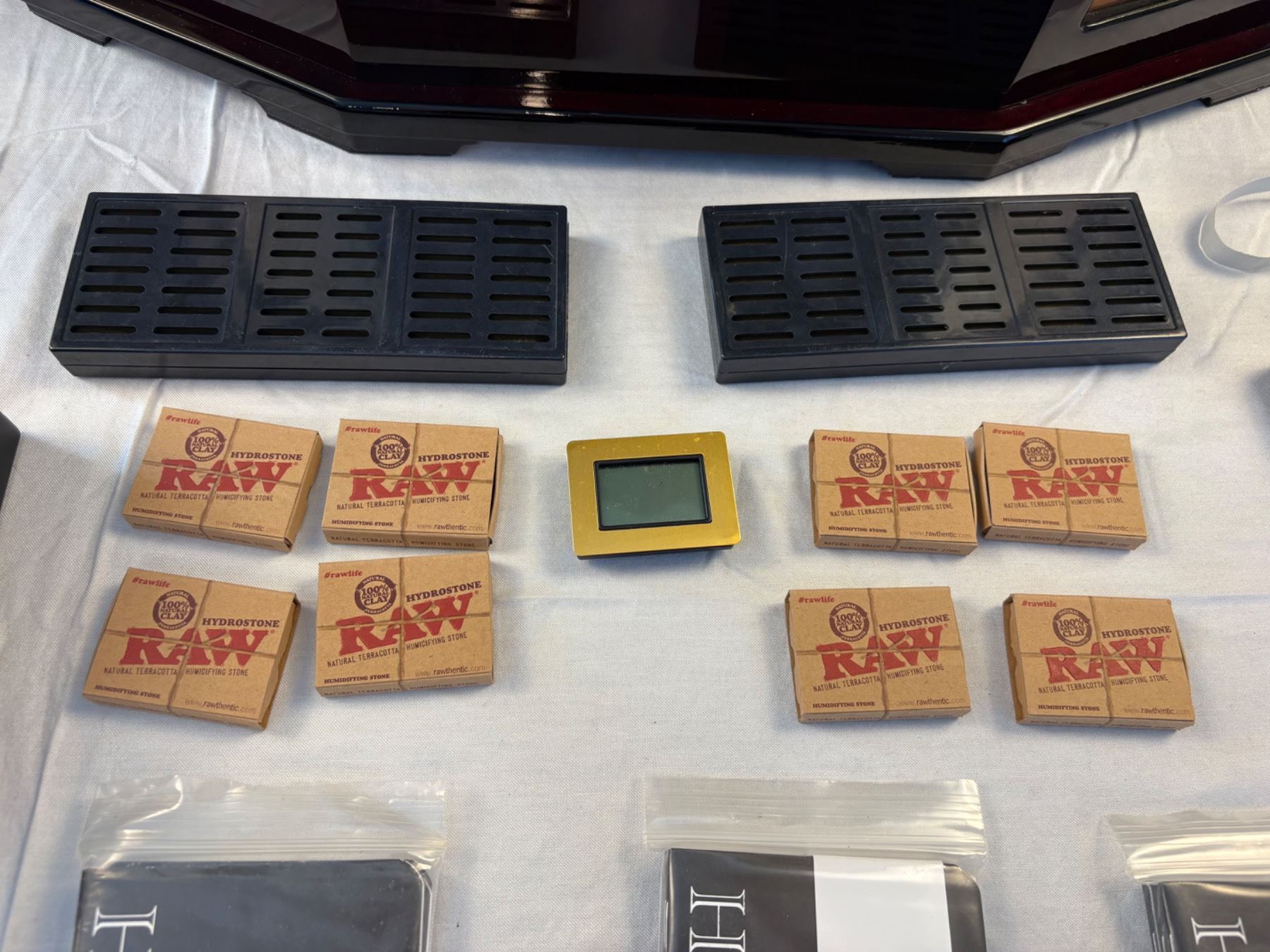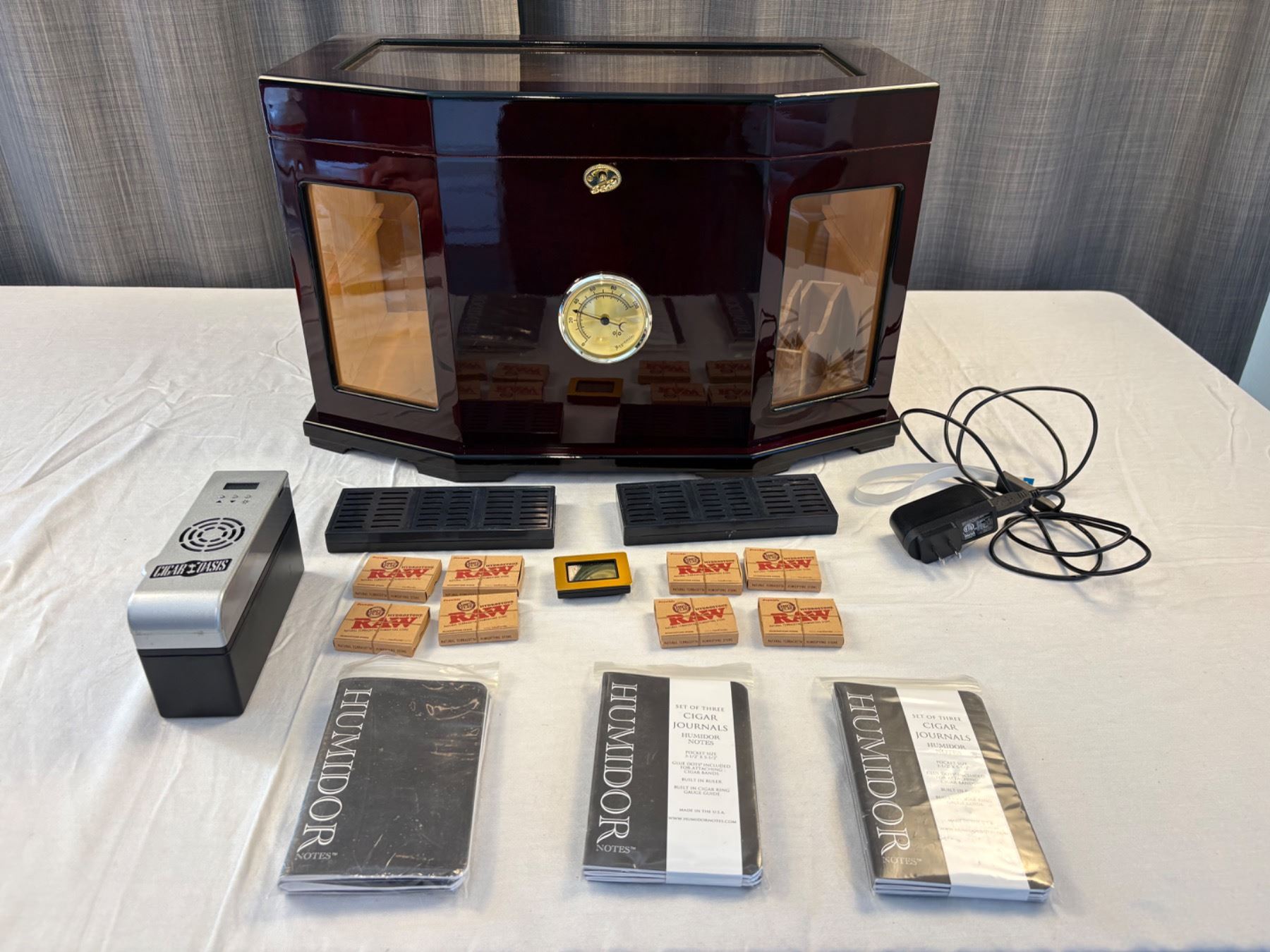 Humidor with moisture control, includes accessories