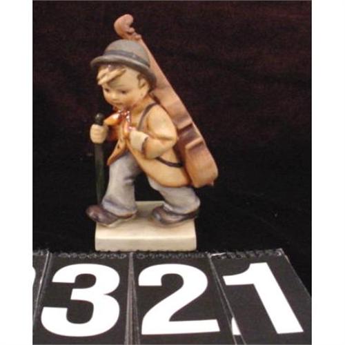 German Hummel little boy with a chello and walking stick 6" high in very good condition .[51]