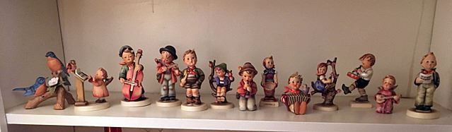 Estate collection of 12 Hummels and blue birds statues. A very nice collection from the farm.