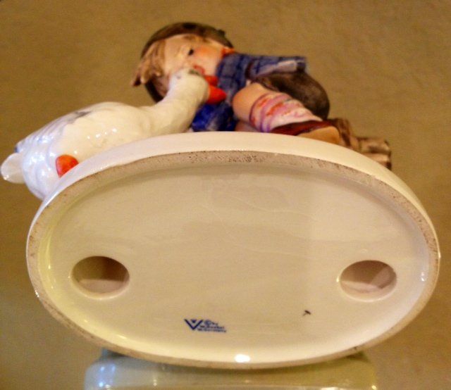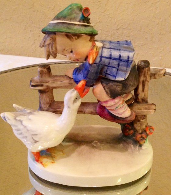 Hummel figurine of boy with goose. Small crack on top, barely noticeable. Marked on bottom "W. Gobel".