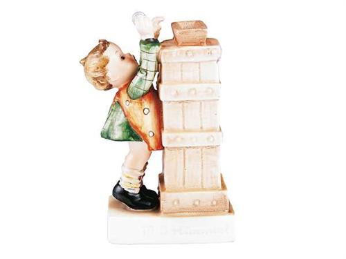 Colour painted pottery. Metal plate with key on the bottom. Original key. impressed 118 (number) and factory mark, stamped mark. Marked: M. I. Hummel, between 1935 and 1949 Size: 13.5 cm