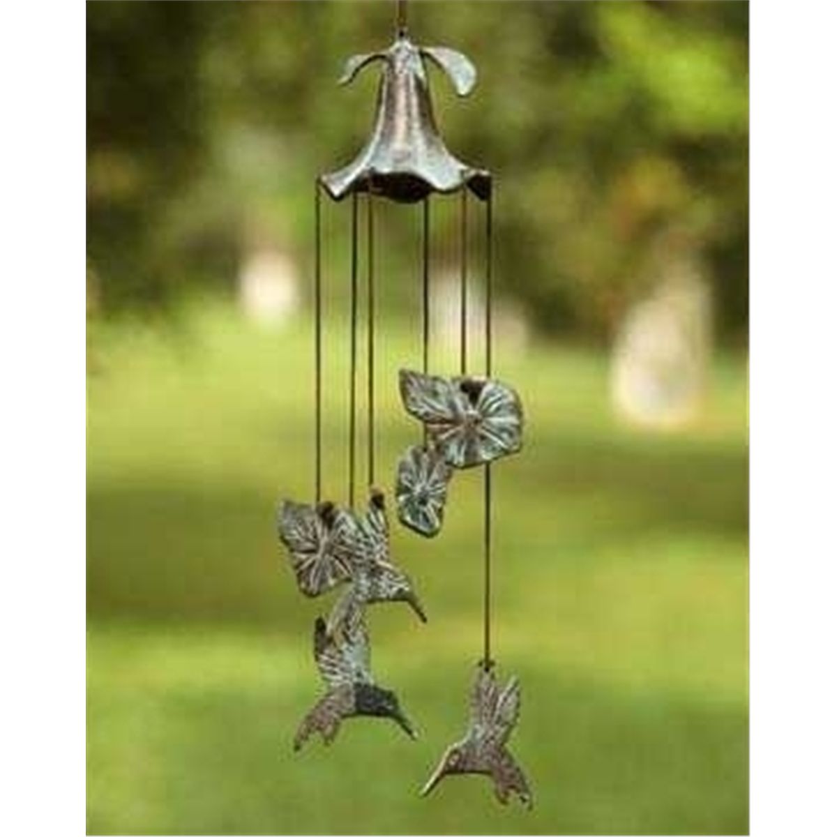 Hummingbird & Morning Glory Wind Chime - 14"H X 3.5"W X 3.5"D - Brass Wind Chime