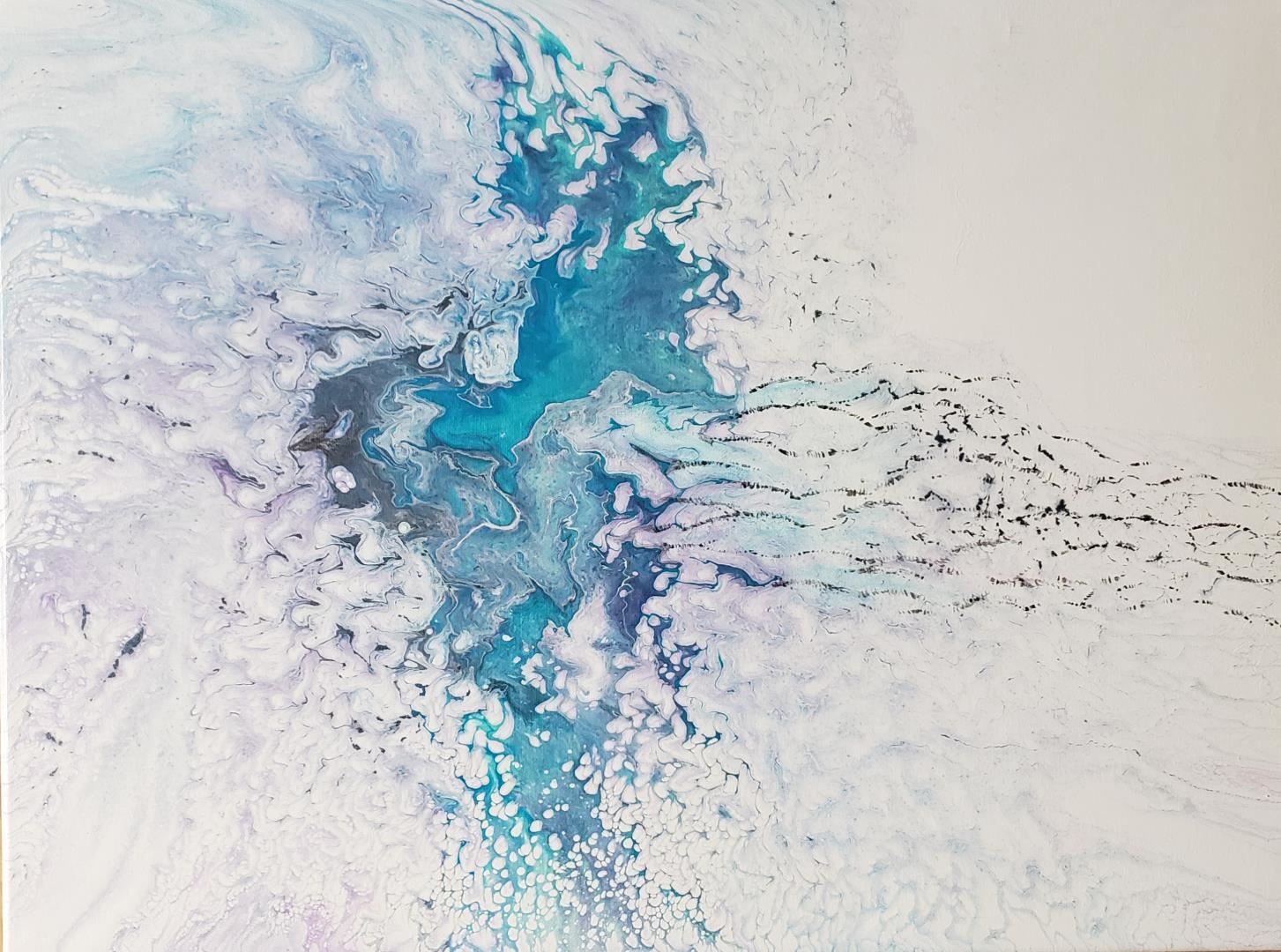 A 18x24" original acrylic on stretched canvas featuring an abstract hummingbird. Says the artist Katie D. A hummingbird's wings beat 80 times per second. Its a blur."w/COA