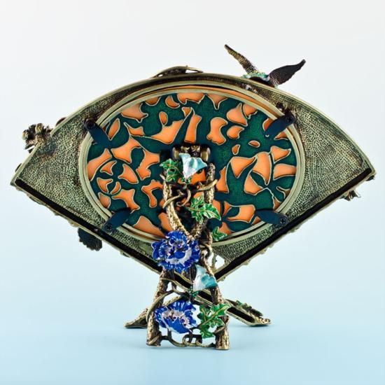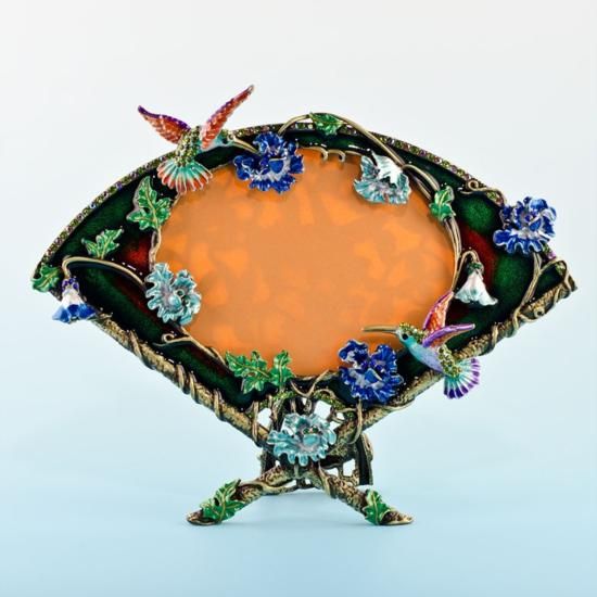 Hummingbirds Enameled Picture Frame, Dimensions: 5.5in (H) X 6.5in (D), Materials Pewter, Enamel, Crystals.
