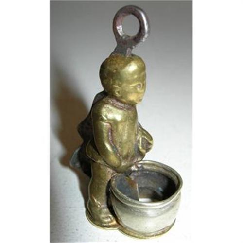 I recently bought this Antique English cheroot or cigar cutter on my most recent buying trip, it caught my imagination immediately and made me smile .. with the little boy let's say "doing his business" into a Victorian chamber pot!<p>The cutter is operated from the rear and is in good working order.<p>Made of brass, it dates to around 1890 and remains in all round great condition, one for the discerning collector.<p>Measures just 1 1/2" tall.