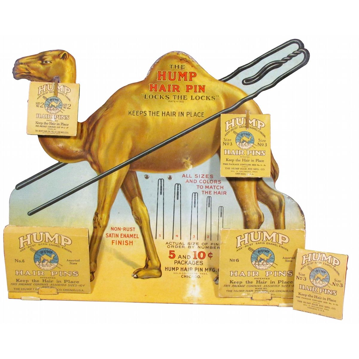 Hump Hair Pin Tin Store Easel Back Display. Comes with product. Some edge ware at hump and small faded area at front center otherwise excellent condition.