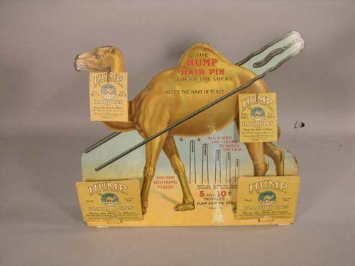 Hump Hair store display with product, 15" x 17". Hump Hair Pin Manufacturer, Chicago, Ill. Some paint loss lower center. Very rare.