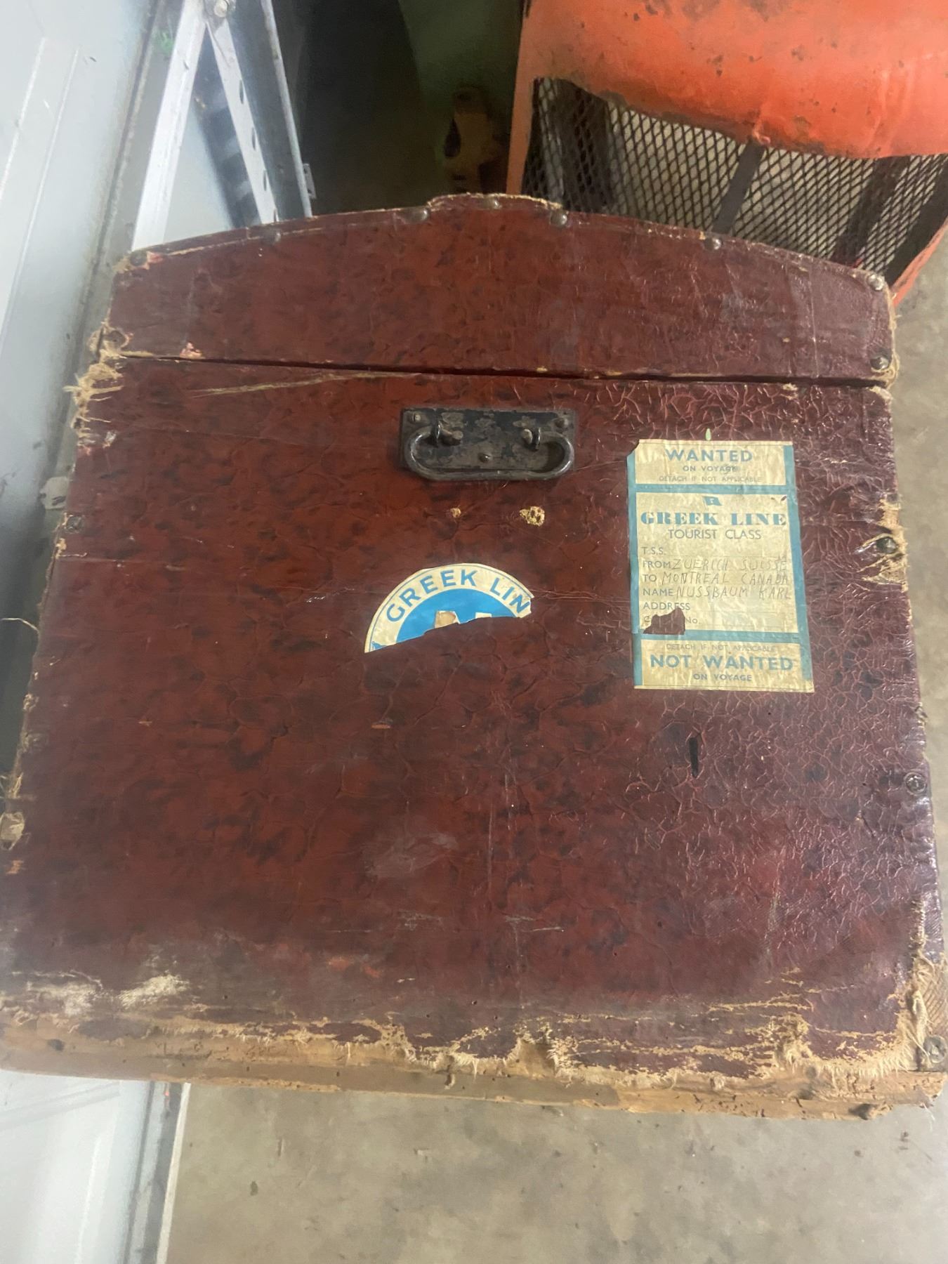 Hump back steamer trunk - original shipping decals - 28"x19" - unique piece