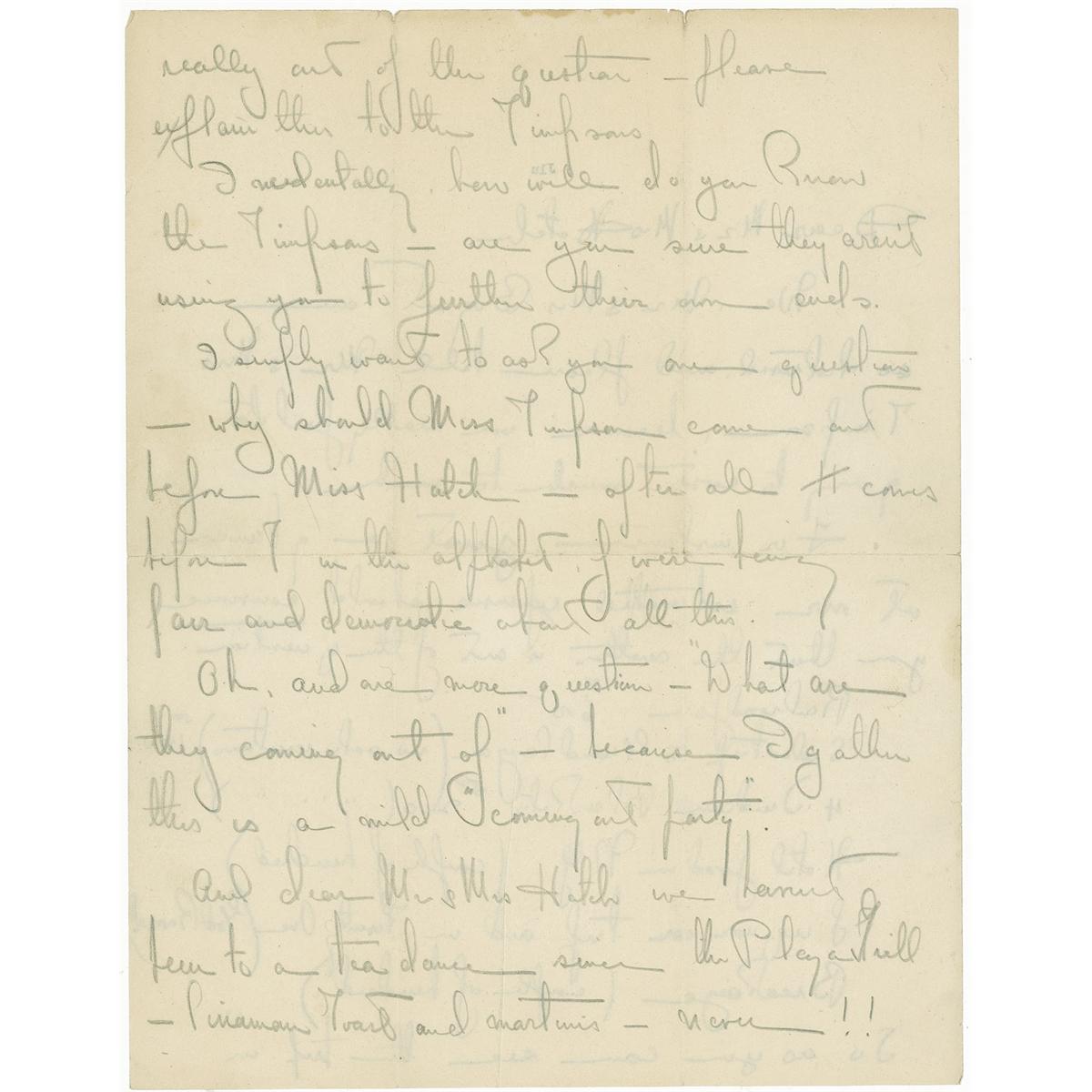 And dear Mr. & Mrs. Hatch we haven’t been to a tea dance…Cinamon [sic] toast and martinis—never!!