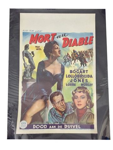 Original mini movie poster for "Mort au Diable" starring Humphrey Bogart. Near Mint. Belgium poster. Rolled in plastic cover. (21"x14")