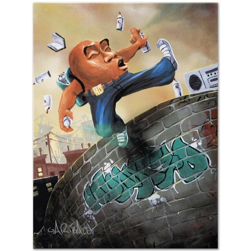 Combining his passions for music and art, David Garibaldi creates visual poetry. "Humpty Dumpty" is a limited edition giclee on stretched canvas, AP numbered and bearing the artist's authorized signature. This piece comes gallery wrapped. Includes Letter of Authenticity. Measures approx. 27" x 36" (image).
