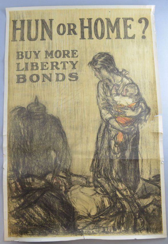 Hun or Home!, World War I poster, 'Buy More Liberty Bonds', artwork by Henry Raleigh, rolled 30 x 20in. (76 x 51cm)