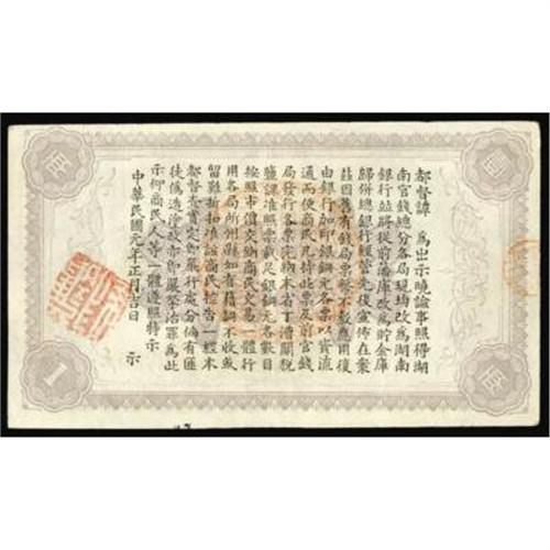 <style type="text/css"> body, td, th { font-family: Arial, Helvetica, sans-serif; font-size: 12px; color: #482424; margin: 0px; padding: 0px; } #header { background-image: url(http://www.bowersandmerena.com/ebay/images/template_v3_01.gif); clear: both; background-color: #590303; border-top-width: 2px; border-top-style: solid; border-top-color: #B38C4F; } #header #header_wrapper { height: 75px; clear: both; width: 800px; margin-right: auto; margin-left: auto; background-image: url(http://www.bowersandmerena.com/ebay/images/template_v3_03.gif); background-repeat: no-repeat; background-position: right; color: #F3EDCC; } #header #header_wrapper #header_logo { float: left; height: 75px; width: 444px; background-image: url(http://www.bowersandmerena.com/ebay/images/template_v3_02.gif); background-repeat: no-repeat; font-size: 10px; text-transform: capitalize; color: #B38C4F; } #header #header_wrapper #header_right { float: left; height: 75px; width: 356px; text-align: right; } #header #header_wrapper #header_right #headerLoginBtn { margin-bottom: 30px; } #header #header_wrapper #header_right input#txtSearch { color: #B49056; border: 1px solid #B49056; width: 175px; padding-top: 3px; padding-right: 3px; padding-bottom: 4px; padding-left: 3px; } #nav { height: 37px; background-image: url(http://www.bowersandmerena.com/ebay/images/template_v3_05.gif); clear: both; } #nav #nav_wrapper { height: 35px; width: 800px; margin-right: auto; margin-left: auto; border-left-width: 1px; border-left-style: solid; border-left-color: #B38C4F; } #nav #nav_wrapper a { padding-right: 15px; padding-left: 15px; border-right-width: 1px; border-right-style: solid; border-right-color: #B38C4F; height: 25px; padding-top: 10px; display: block; float: left; text-decoration: none; font-weight: bold; color: #5D0303; } #nav #nav_wrapper a:hover { color: #B38C4F; } #nav #nav_wrapper #search { float: right; padding-top: 7px; } #nav #nav_wrapper #search #txtSearch { font-family: Arial, Helvetica, sans-serif; font-size: 10px; text-transform: uppercase; color: #D2AE75; border: 1px solid #B38C4F; padding: 3px; } #content_bgd { background-image: url(http://www.bowersandmerena.com/ebay/images/template_v3_09.gif); background-repeat: repeat-y; background-position: center; padding-top: 15px; padding-bottom: 15px; background-color: #FBFBDB; } #content_wrapper { clear: both; height: auto; width: 800px; margin-right: auto; margin-left: auto; } .LotDetailWhite { line-height:normal; font-size:13px; font-family: arial,helvetica,sans-serif; color: White; font-weight: bold; } .LotDetailInformation { line-height:normal; font-size: 13px; font-family: arial,helvetica,sans-serif; } .LotDetailMessage { line-height:normal; font-size: 13px; font-family: arial,helvetica,sans-serif; color: red; } } tr.HeaderAuctionTitle td { color: #000000; font-weight: bold; padding: 2px; background-image: url(http://www.bowersandmerena.com/ebay/images/template_v3_05.gif); background-repeat: repeat-x; border-bottom-width: 1px; border-bottom-style: solid; border-bottom-color: #B38C4F; } table.AuctionSummary a, table.AuctionSummary a:link, table.AuctionSummary a:visited { color: #0000FF; text-decoration: none; } } td.tableHeaderLeft { border-left-width: 1px; border-left-style: solid; border-left-color: #B38C4F; } td.tableHeaderRight { border-right-width: 1px; border-right-style: solid; border-right-color: #B38C4F; } td.tableCellMiddle { border-left-width: 1px; border-left-style: solid; border-left-color: #B38C4F; border-right-width: 1px; border-right-style: solid; border-right-color: #B38C4F; padding: 5px; } tr.footer td { border-top-width: 1px; border-top-style: solid; border-top-color: #B38C4F; } </style> </head> <body> <div id="header"> <div id="header_wrapper"> <div id="header_logo"> </div> <div id="header_right"> </div> </div> </div> <div id="nav"> <div id="nav_wrapper"> <a href="http://www.bowersandmerena.com">Our eBayLive Auctions</a> <a href="#PaymentInfo">Payment Information</a> <a href="#ShippingInfo">Shipping Information</a> <a href="#About">About Bowers and Merena</a> </div> </div> <div id="content_bgd"> <div id="content_wrapper"> <table width="100%" border="0" cellpadding="5" cellspacing="0" class="AuctionSummary"> <tbody> <tr class="HeaderAuctionTitle" style="height: 25px;"> <td align="left" class="tableHeaderLeft" > </td> <td align="center" class="tableHeaderRight"> <span style="font-size: large;">Lot #645. Provincial Banks. Hunan Bank, 1912 Tael Issue.</span> </td> </tr> <tr> <td colspan="3" class="tableCellMiddle"> 1912, 1 Yuan, P-S2032, VF-XF condition, peacocks meeting at top, exceptional condition for this note.