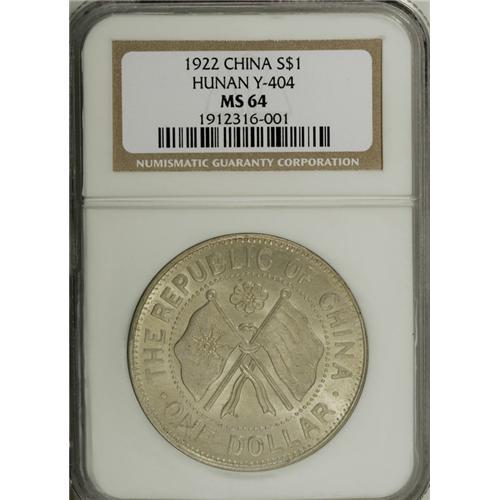 Hunan Dollar 1922 (Year 11), KM-Y404, MS64 NGC, a premi