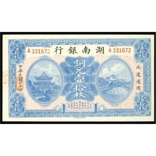 <style type="text/css"> body, td, th { font-family: Arial, Helvetica, sans-serif; font-size: 12px; color: #482424; margin: 0px; padding: 0px; } #header { background-image: url(http://www.bowersandmerena.com/ebay/images/template_v3_01.gif); clear: both; background-color: #590303; border-top-width: 2px; border-top-style: solid; border-top-color: #B38C4F; } #header #header_wrapper { height: 75px; clear: both; width: 800px; margin-right: auto; margin-left: auto; background-image: url(http://www.bowersandmerena.com/ebay/images/template_v3_03.gif); background-repeat: no-repeat; background-position: right; color: #F3EDCC; } #header #header_wrapper #header_logo { float: left; height: 75px; width: 444px; background-image: url(http://www.bowersandmerena.com/ebay/images/template_v3_02.gif); background-repeat: no-repeat; font-size: 10px; text-transform: capitalize; color: #B38C4F; } #header #header_wrapper #header_right { float: left; height: 75px; width: 356px; text-align: right; } #header #header_wrapper #header_right #headerLoginBtn { margin-bottom: 30px; } #header #header_wrapper #header_right input#txtSearch { color: #B49056; border: 1px solid #B49056; width: 175px; padding-top: 3px; padding-right: 3px; padding-bottom: 4px; padding-left: 3px; } #nav { height: 37px; background-image: url(http://www.bowersandmerena.com/ebay/images/template_v3_05.gif); clear: both; } #nav #nav_wrapper { height: 35px; width: 800px; margin-right: auto; margin-left: auto; border-left-width: 1px; border-left-style: solid; border-left-color: #B38C4F; } #nav #nav_wrapper a { padding-right: 15px; padding-left: 15px; border-right-width: 1px; border-right-style: solid; border-right-color: #B38C4F; height: 25px; padding-top: 10px; display: block; float: left; text-decoration: none; font-weight: bold; color: #5D0303; } #nav #nav_wrapper a:hover { color: #B38C4F; } #nav #nav_wrapper #search { float: right; padding-top: 7px; } #nav #nav_wrapper #search #txtSearch { font-family: Arial, Helvetica, sans-serif; font-size: 10px; text-transform: uppercase; color: #D2AE75; border: 1px solid #B38C4F; padding: 3px; } #content_bgd { background-image: url(http://www.bowersandmerena.com/ebay/images/template_v3_09.gif); background-repeat: repeat-y; background-position: center; padding-top: 15px; padding-bottom: 15px; background-color: #FBFBDB; } #content_wrapper { clear: both; height: auto; width: 800px; margin-right: auto; margin-left: auto; } .LotDetailWhite { line-height:normal; font-size:13px; font-family: arial,helvetica,sans-serif; color: White; font-weight: bold; } .LotDetailInformation { line-height:normal; font-size: 13px; font-family: arial,helvetica,sans-serif; } .LotDetailMessage { line-height:normal; font-size: 13px; font-family: arial,helvetica,sans-serif; color: red; } } tr.HeaderAuctionTitle td { color: #000000; font-weight: bold; padding: 2px; background-image: url(http://www.bowersandmerena.com/ebay/images/template_v3_05.gif); background-repeat: repeat-x; border-bottom-width: 1px; border-bottom-style: solid; border-bottom-color: #B38C4F; } table.AuctionSummary a, table.AuctionSummary a:link, table.AuctionSummary a:visited { color: #0000FF; text-decoration: none; } } td.tableHeaderLeft { border-left-width: 1px; border-left-style: solid; border-left-color: #B38C4F; } td.tableHeaderRight { border-right-width: 1px; border-right-style: solid; border-right-color: #B38C4F; } td.tableCellMiddle { border-left-width: 1px; border-left-style: solid; border-left-color: #B38C4F; border-right-width: 1px; border-right-style: solid; border-right-color: #B38C4F; padding: 5px; } tr.footer td { border-top-width: 1px; border-top-style: solid; border-top-color: #B38C4F; } </style> </head> <body> <div id="header"> <div id="header_wrapper"> <div id="header_logo"> </div> <div id="header_right"> </div> </div> </div> <div id="nav"> <div id="nav_wrapper"> <a href="http://www.bowersandmerena.com">Our eBayLive Auctions</a> <a href="#PaymentInfo">Payment Information</a> <a href="#ShippingInfo">Shipping Information</a> <a href="#About">About Bowers and Merena</a> </div> </div> <div id="content_bgd"> <div id="content_wrapper"> <table width="100%" border="0" cellpadding="5" cellspacing="0" class="AuctionSummary"> <tbody> <tr class="HeaderAuctionTitle" style="height: 25px;"> <td align="left" class="tableHeaderLeft" > </td> <td align="center" class="tableHeaderRight"> <span style="font-size: large;">Lot #648. Provincial Banks. Hunan Provincial Bank, 1917 Copper Coin Issues.</span> </td> </tr> <tr> <td colspan="3" class="tableCellMiddle"> Changsha, 1917, 10 Coppers, P-S2056, Choice Uncirculated condition, light blue and pink undertint on face and olive back, possibly finest known for this issue. CMPA, printer.