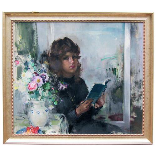 This fine oil painting on canvas is by the Hungarian painter, Antal Jancsek (1907-1985), and depicts his daughter Adrienn. Canvas measures 33" by 39" and frame measures 36" by 42". "Adrienn kislanyom" is written on the rear of the canvas, which translates to "Adrienn my daughter". The other surrounding words have not been deciphered. This work is signed by the artist in the lower right corner.