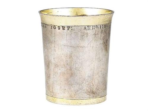 Silver, 171 g, partly with vermeil. Tapering form. Everted rim, inscription: "SZIKSZAI:JOSEF:ANNO.1788:" Hungarian, circa 1700 Size: 9 cm