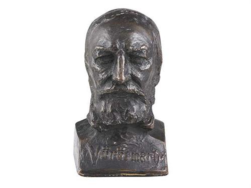 Cast bronze with patina. Unmarked. Size: 17 cm