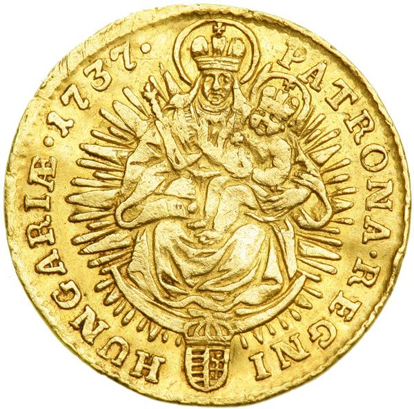 Hungary. Ducat, 1737-KB. Fr-171; KM-306.2. Karl VI. Ruler standing. Reverse: Madonna seated in flames. Damaged, edge nicks, scratches and creased. NGC graded Very Fine, Details.