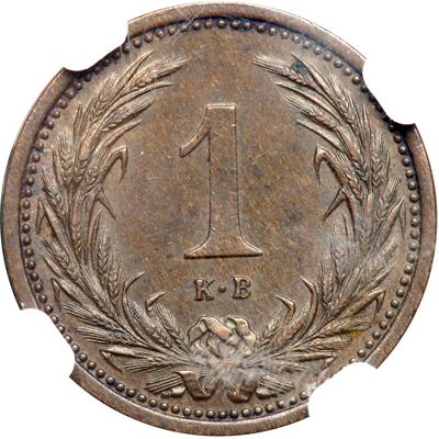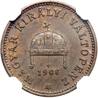 Hungary. Filler, 1906-KB. KM-480. Rare date. In a new NGC 4 prong holder. NGC graded MS-62 Brown.
