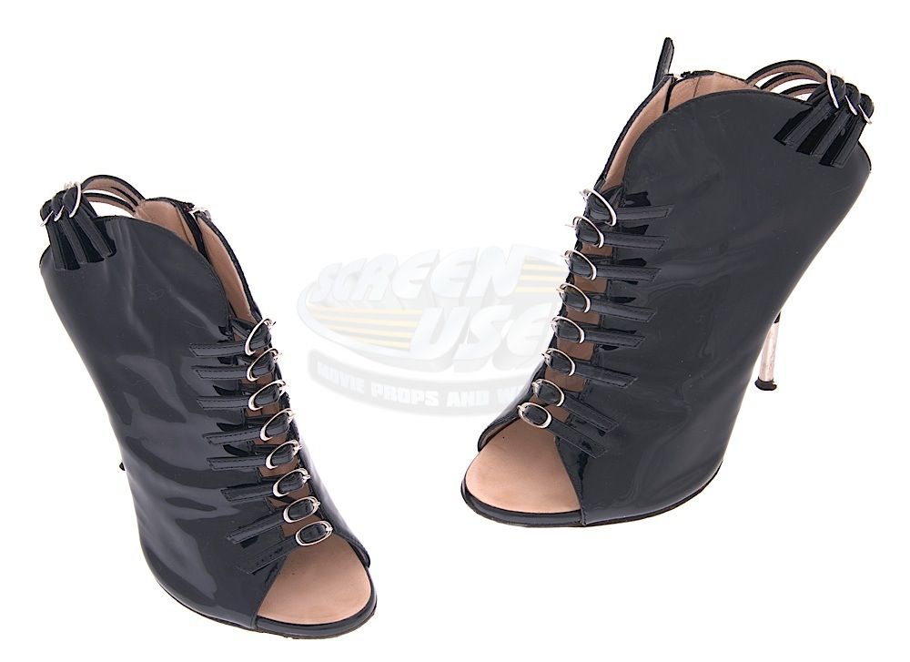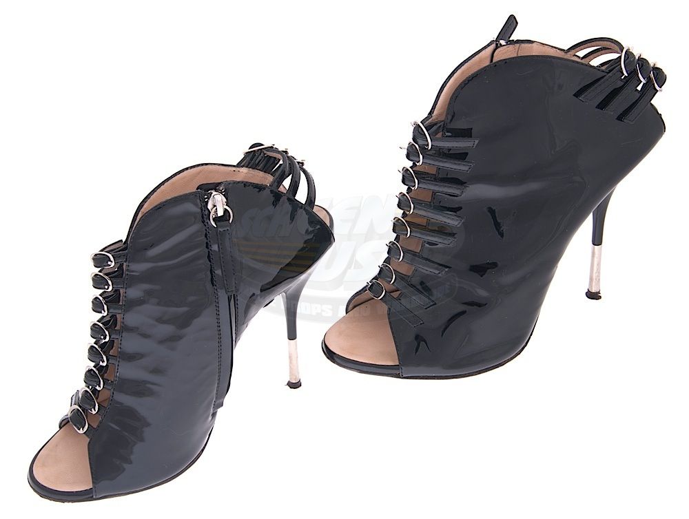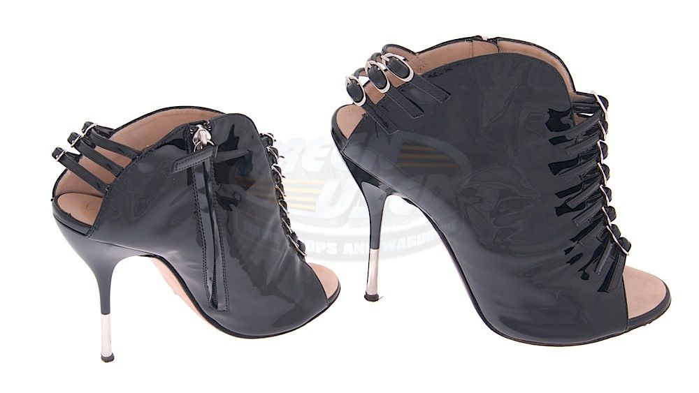 (Lionsgate, 2012) The infamous pumps acquired by the production for use by Elizabeth Banks as "Effie" with her reaping costume. Giuseppe Zanotti size 37 (size 7 US). These were the only pair of these shoes used during filming. Minor wear is visible on the soles of the shoes.