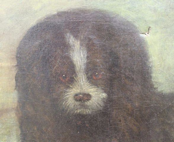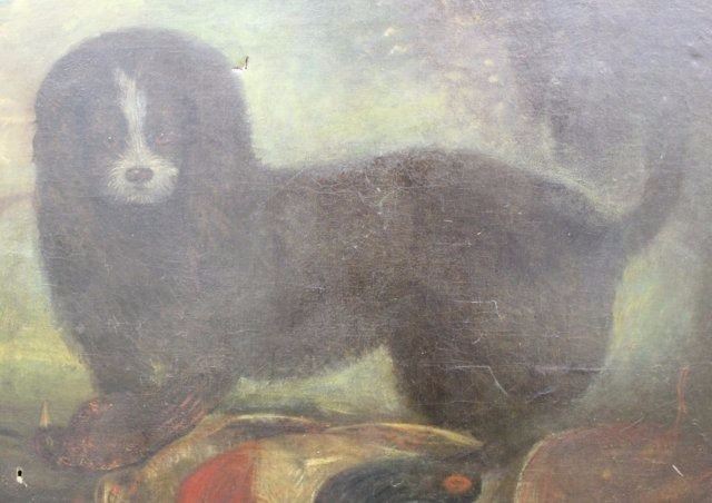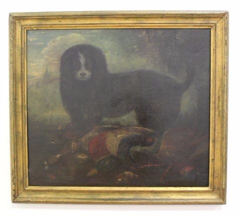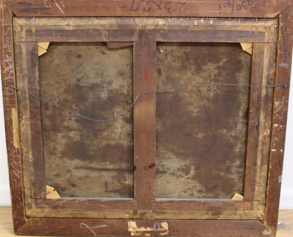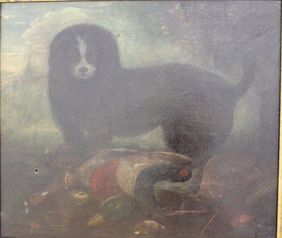 Oil on canvas. Late 19th/early 20th century. Approx. 24" H x 30" W unframed, 30" H x 33 1/2" W framed. Damages, wear, and hole to canvas.
