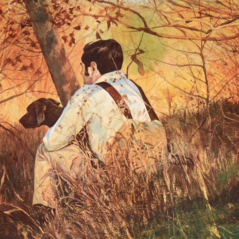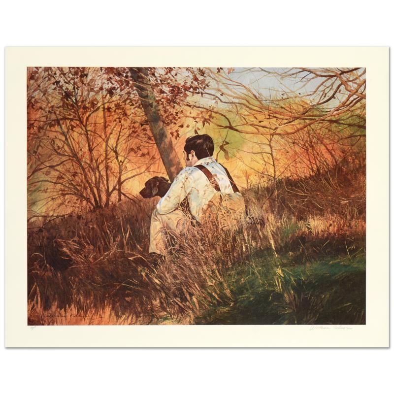 "Hunter & Dog" is a limited edition print on paper by William Nelson, numbered and hand signed by the artist! Measures approx. 28.5" x 22.5" (with border); 25" x 19" (image). Please allow 5 additional business for items that include canvas stretch or framing.